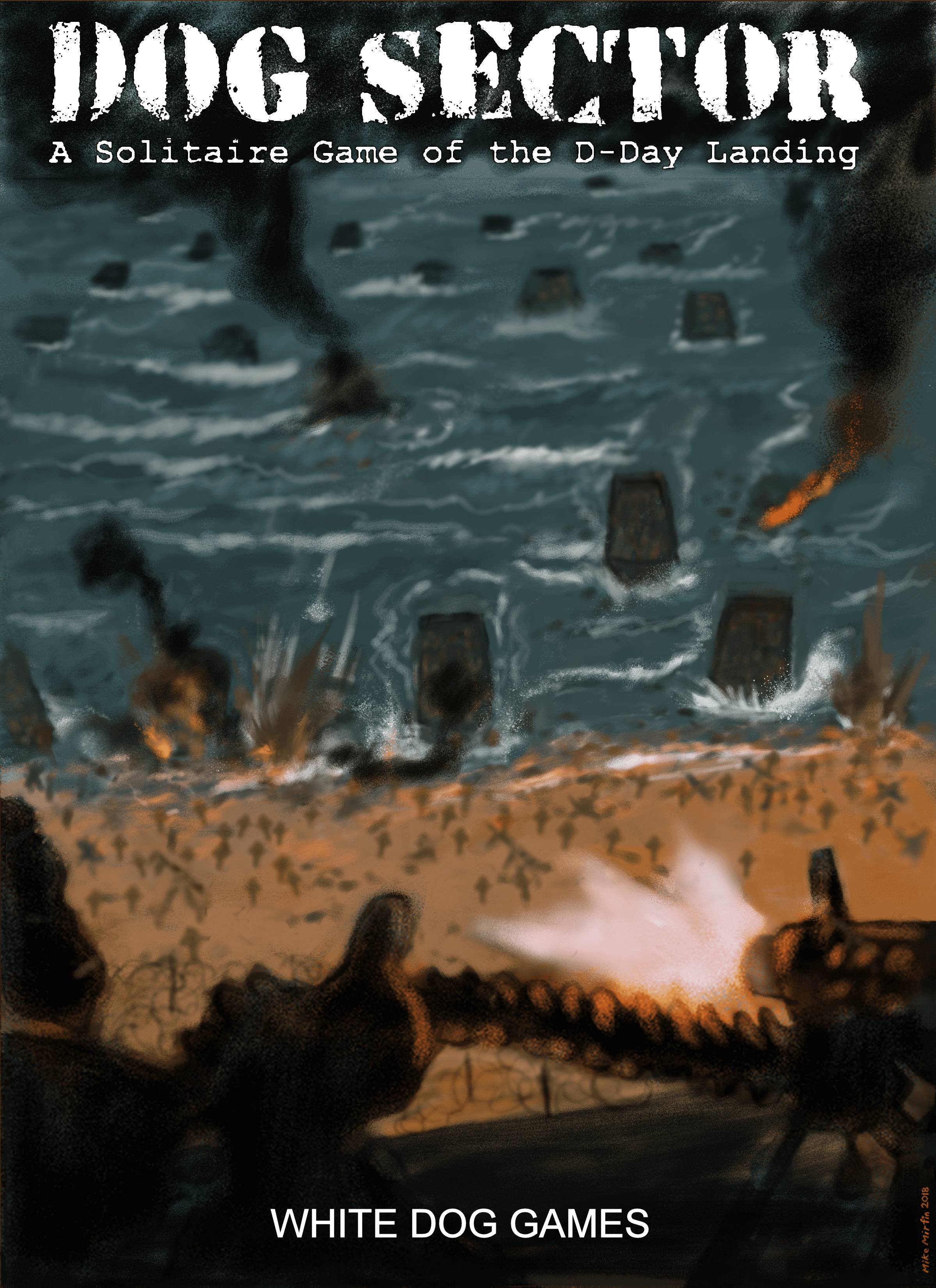 Descrizione: "Dog Sector" is a beer-and-pretzels level, solitaire wargame that simulates the famous WW II Normandy amphibious landing in 1944. American forces from off-map transports assault the beach. Those units not swamped during the approach attempt to move up the beach toward the German-occupied bluffs, clearing obstacles as they advance. Some units (tanks, sharpshooters, bazookas) execute ranged fire at fortified German units. Naval Forward Observers guide ship-to-shore fire support. The Player’s assault force faces German defensive fire (solitaire, system-controlled) from machine guns and anti-tank emplacements, panzerfaust and rifle fire, as well as off-map German artillery. When the bluffs are reached, American units must clear the trenches by assault. The game tension is visceral as your brave Joes are pinned down or hit by the intense German fire. You’ll grit your teeth as a Combat Engineer team deploys Bangalore torpedoes to clear obstacles while under fire, and cheer when a German unit is taken out by a tank or by a ship’s guns directed by one of your forward observers. How many sections of German trench will your men be able to clear in the twelve, heart-pounding game turns? Will you be a private or a colonel at the end of the game? Good luck, soldier!