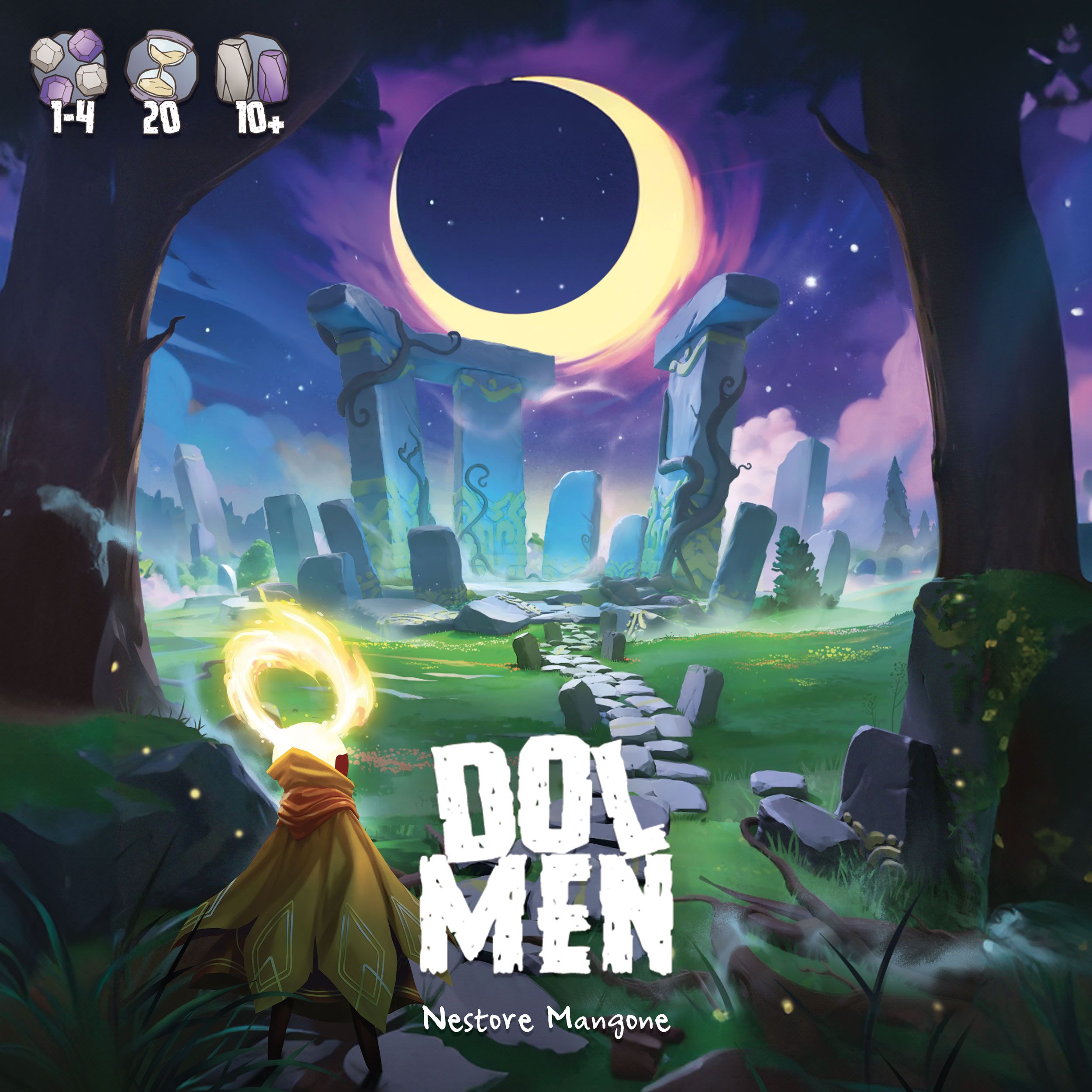 Descrizione: Dolmen is a cooperative game of logic and spatial management, where players take on the roles of druids and shamanesses working to rebuild a stone circle and contain a growing lunar curse.