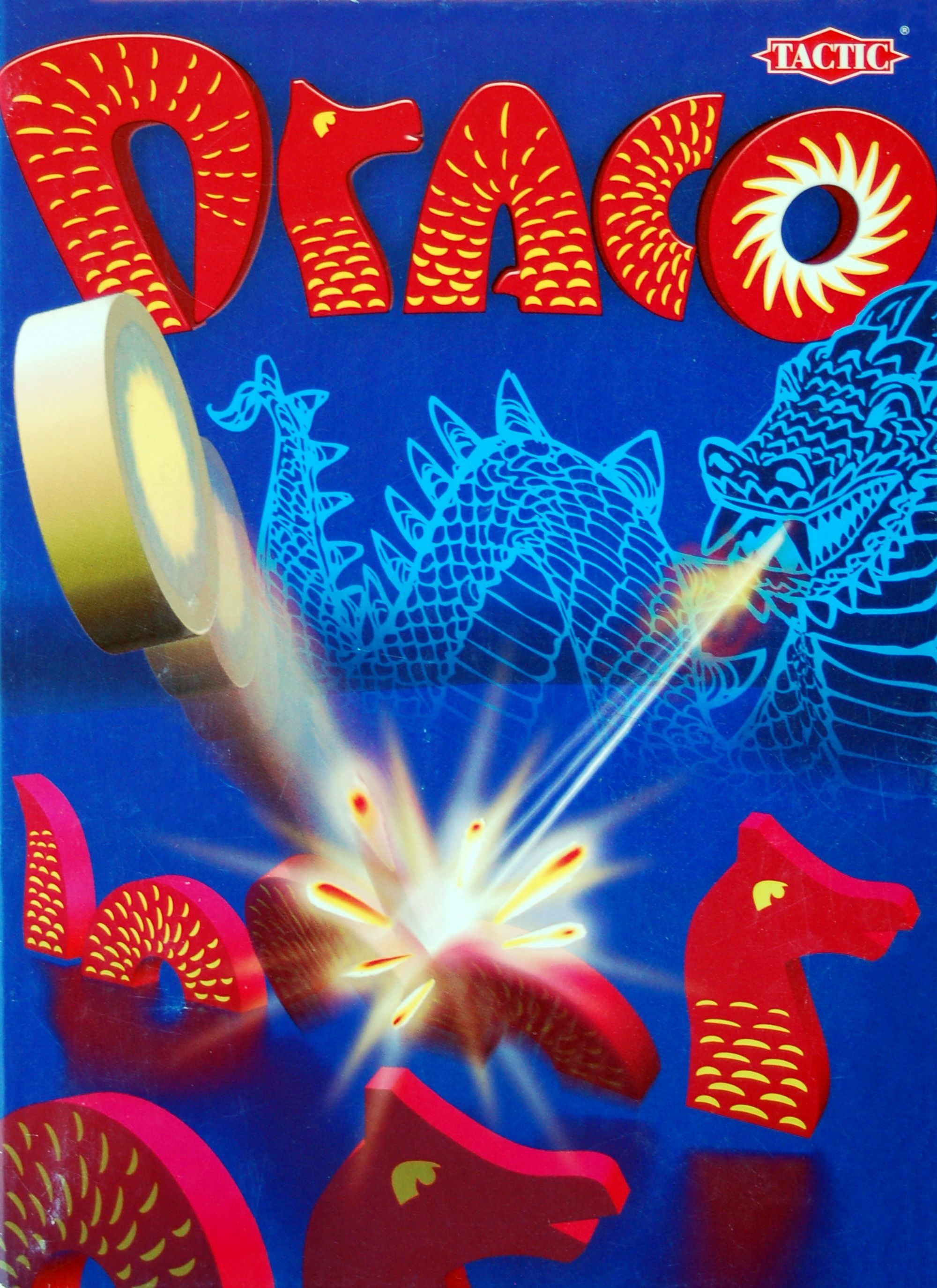 Draco is basically a dexterity game in which you try to knock over pieces of the opponent's or the neutral central dragon by shooting them with wooden disks. Success is rewarded by inclusion of the piece to your own dragon.