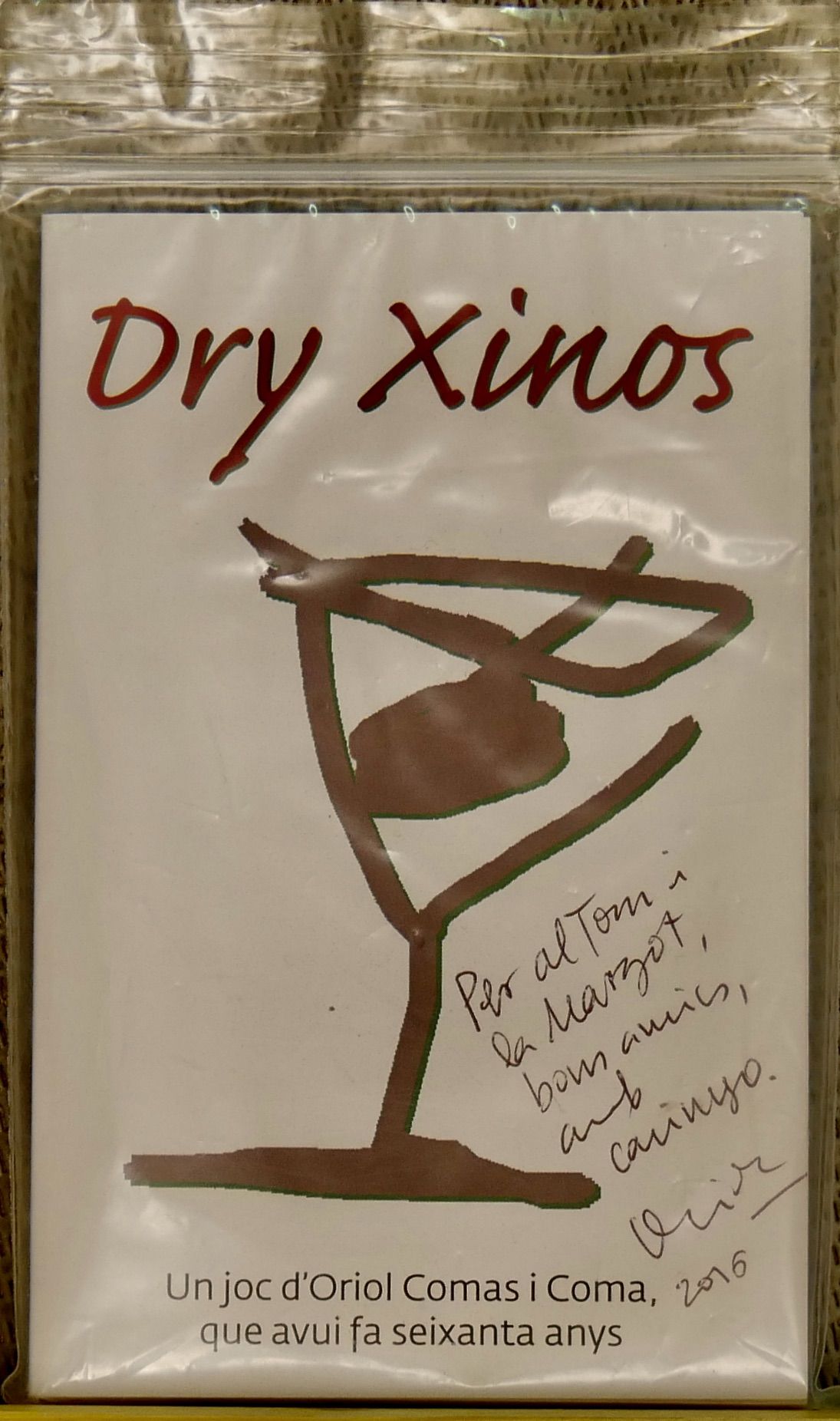 Descrizione: Each player plays with 3 bicoloured chips. At each turn, the players simultaneously and secretly choose the number (0-3) and colour (red or blue) of the chips they'd like to use in this turn. The players' bets are written on the notepad. The first player places their bet. A bet contains three elements: the predominating colour (red/blue/tie), number of total chips chosen by all players, and if the number of dries (glass) is even/odd/zero. When all players have placed their bets, they show their chips. A point is received for each correctly guessed item. The player who has gained 11 points wins. The loser pays a round of Dry.