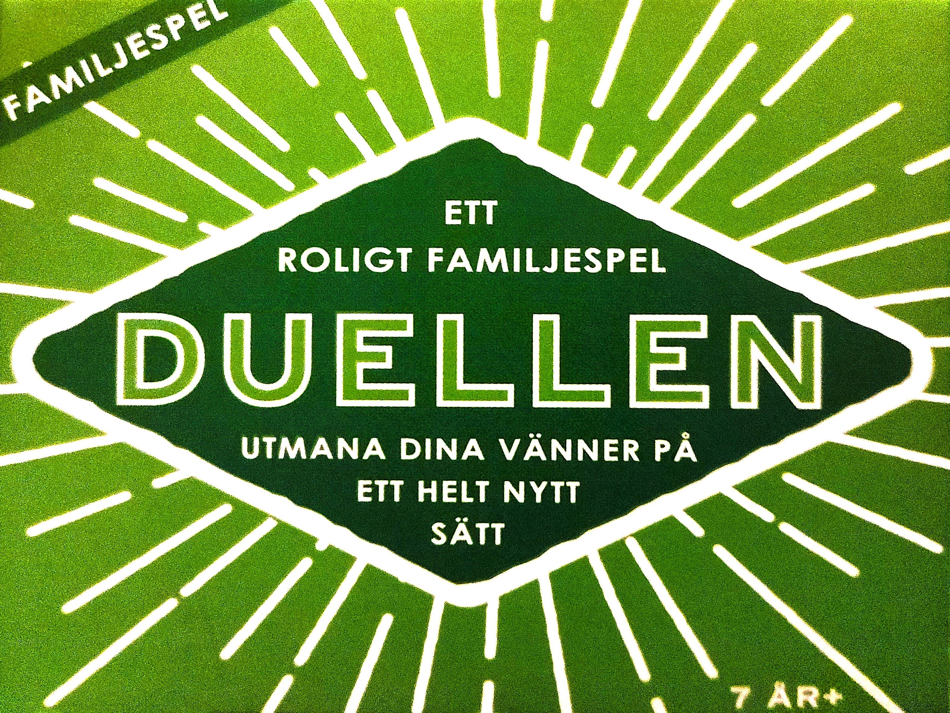 Descrizione: Duellen is a game where each player challenge another player each turn. One player draws a card and read a challenge printed on that card, and then chose another player to compete with. The challenges can be to say as many car brands as possible, or as many US states as possible, or to stand on one feet the longest. The player that did the challenge better gets the cards. The player with most cards in the end of the game is the winner.