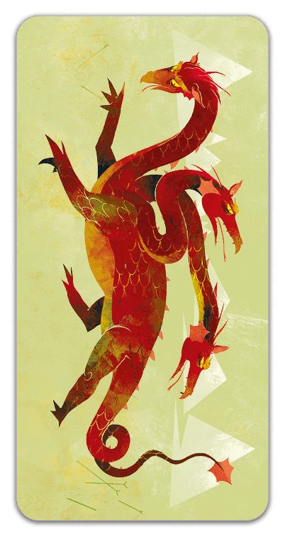 Descrizione: The Three-Headed Dragon expansion is an additional card for the game Duo Regna, designed to make your matches even more challenging. The three-headed dragon counts as three dragons in the final scoring.