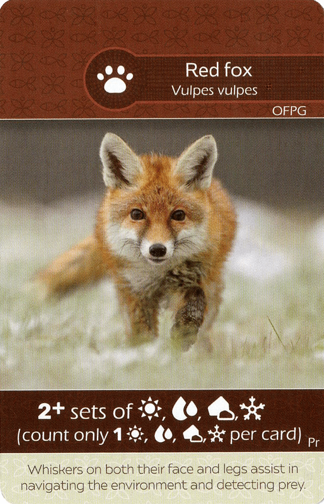 Descrizione: Exclusive fauna promo card made for Our Family Plays Games, featuring a Red Fox on one side and Badger on the other.