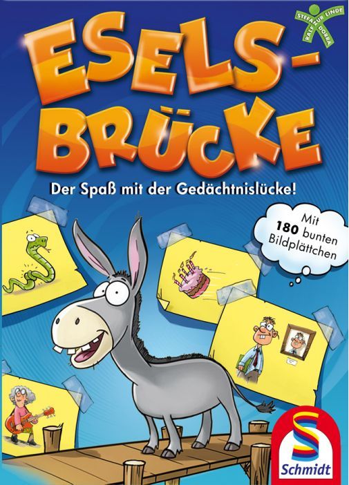Descrizione: The name "Eselsbrücke" literally means "donkey bridge" – as depicted on the cover of the game Eselsbrücke, for example – but the term also refers to a mnemonic, something used to retain a memory, and that's the goal at the heart of this design from Stefan Dorra and Ralf zur Linde.