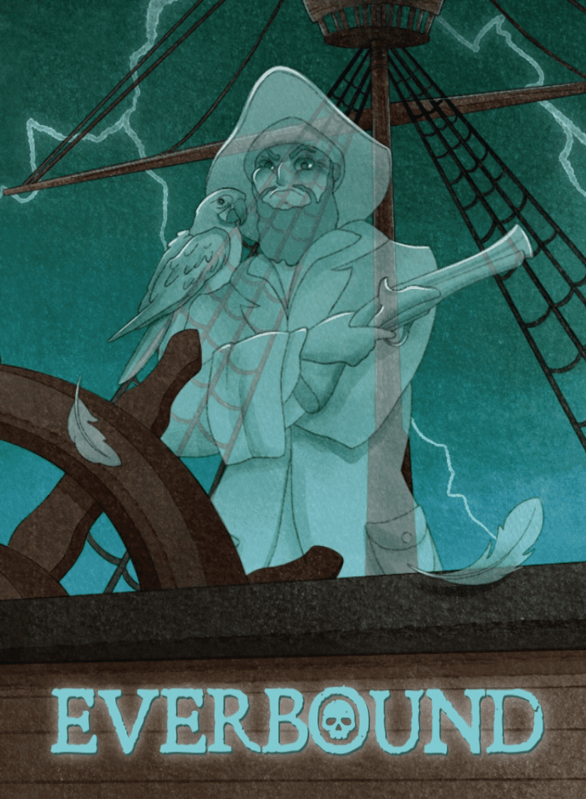 In Everbound, a solo 18 card game by Logical Fox, every crew member counts. Recruit legendary pirates by discarding resources to pay their bribe cost. Place them strategically around your ship to maximize their abilities. Will your crew become legend, or be lost to the cursed seas?