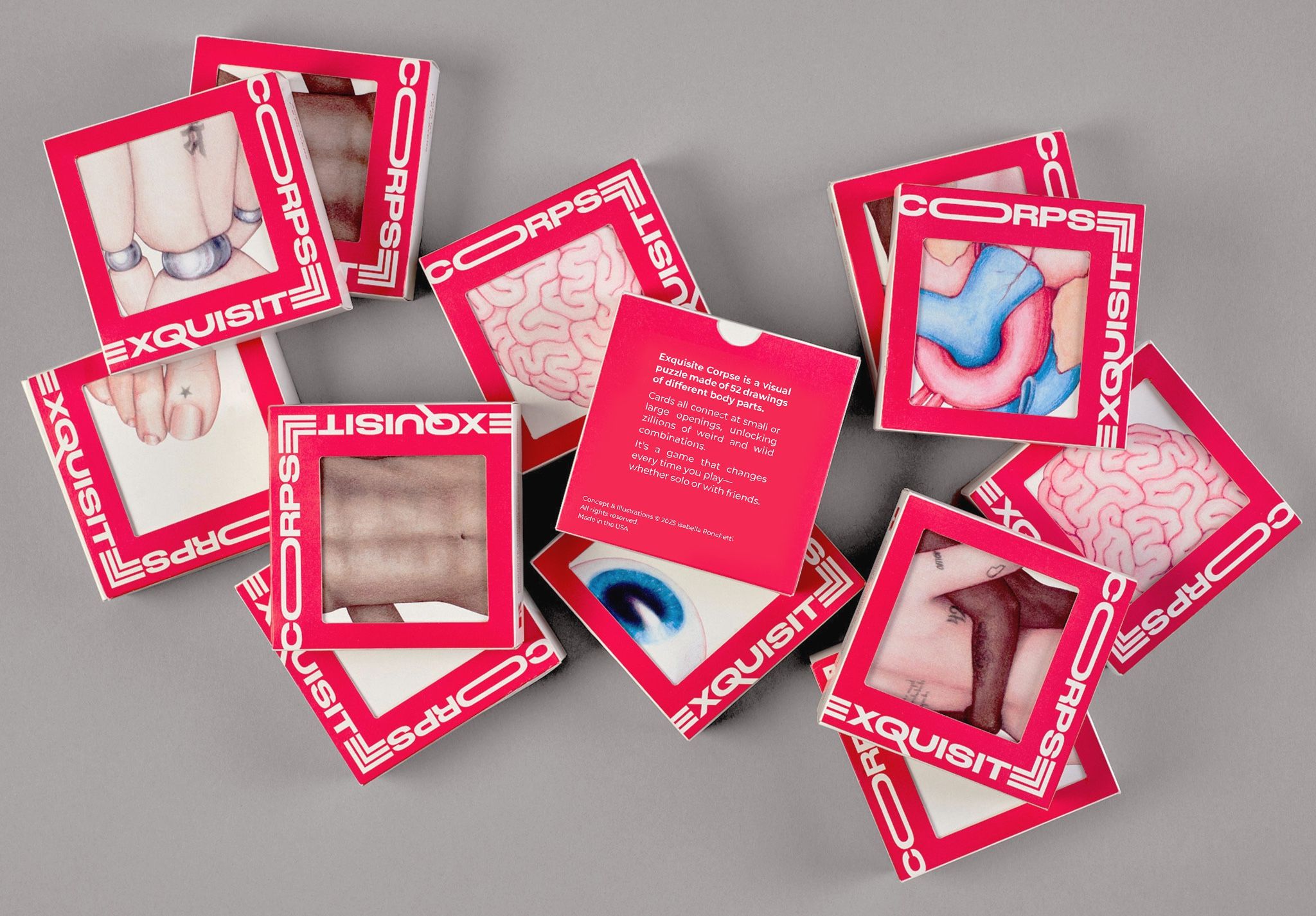 Descrizione: Exquisite Corpse is a visual puzzle made up of 52 drawings of different body parts. Cards all connect at small or large openings, unlocking zillions of weird and unexpected combinations. It's a game that changes every time you play—whether solo or with friends.