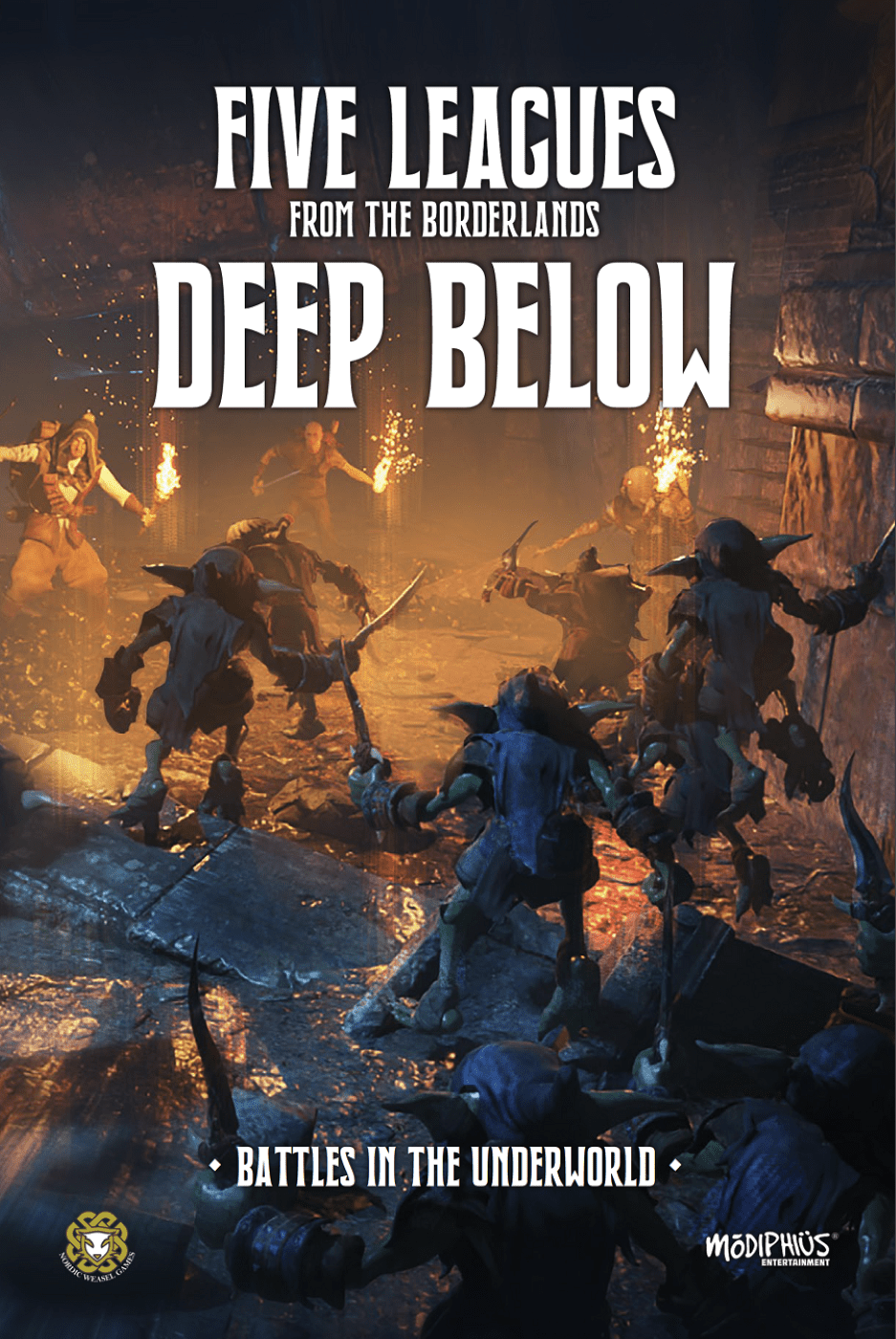 It is both a standalone game and a variant of Five Leagues from the Borderlands, tailored to the deep, dark environment, and integrated to allow characters to transfer between games for an expanded game universe.