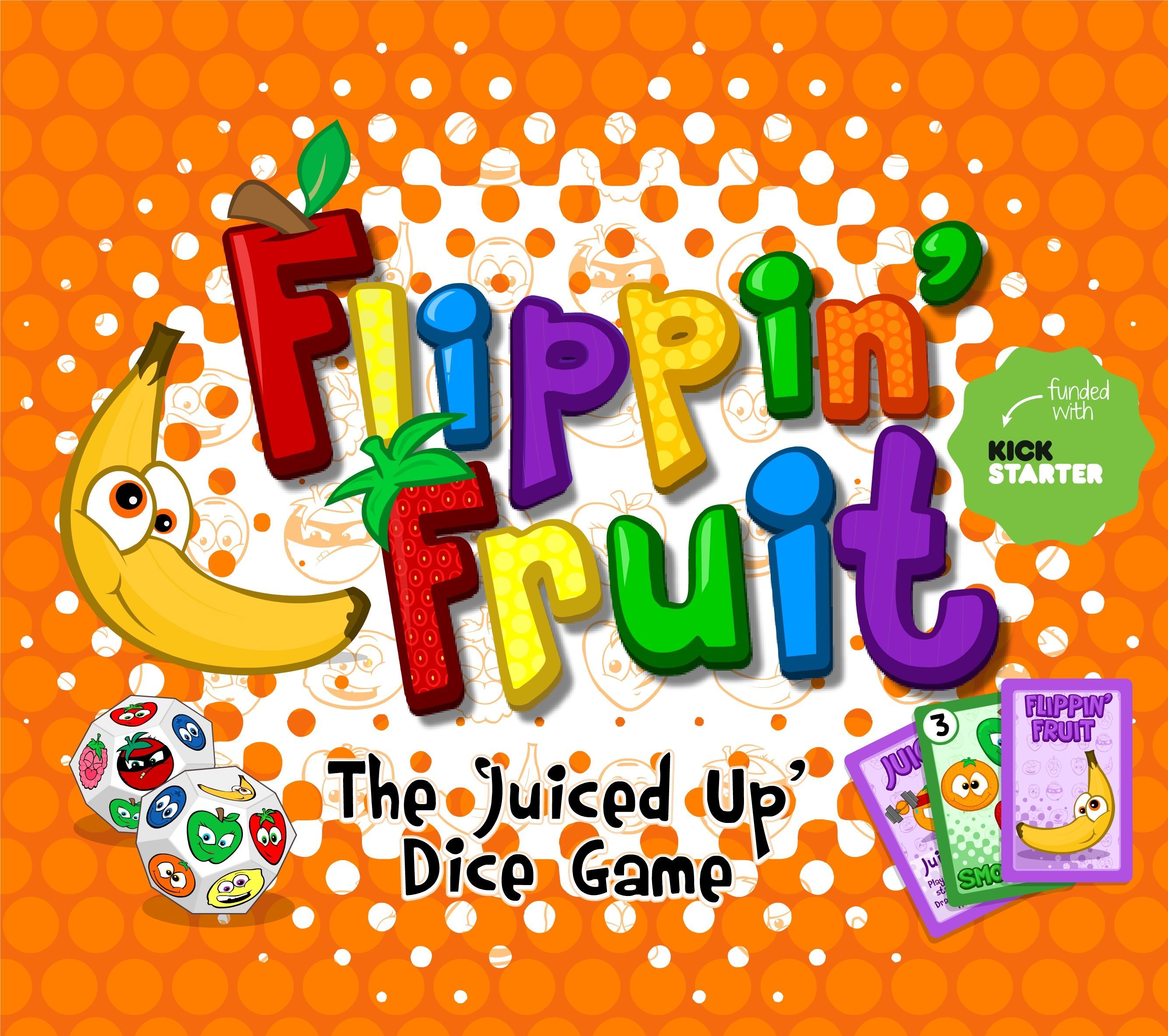 Descrizione: Flippin' Fruit is a fruit-themed dice and card game for 2-4 players. Players want to score as many PIPS (i.e., points) as they can by rolling and "flipping" the custom 12-sided dice to match the fruit symbols rolled to the fruit symbols on smoothie and fruit salad cards. Each turn, a player performs three actions, with the action choices being: