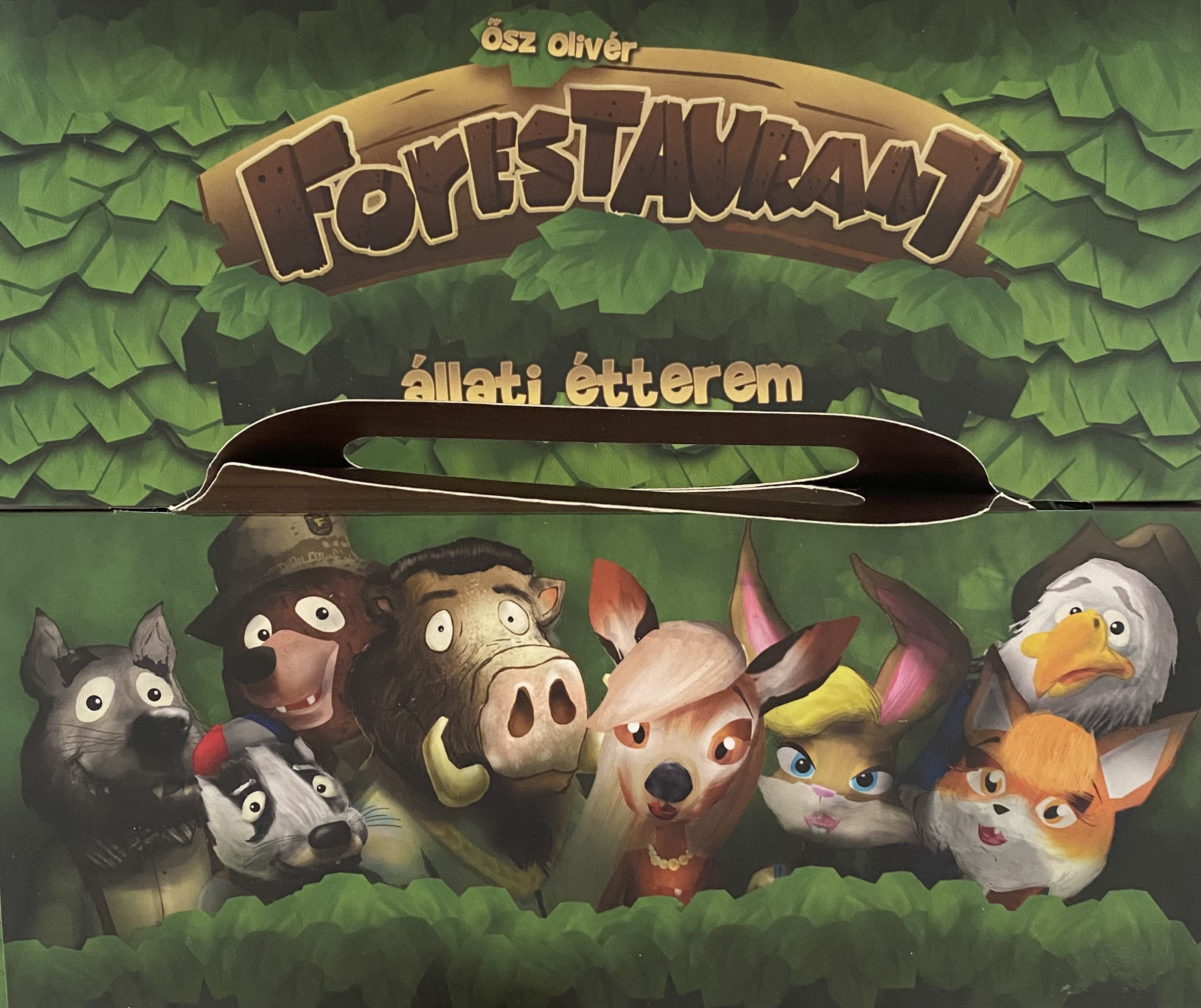 Descrizione: Forestaurant is a cooperative board game in which the players are tasked to manage a restaurant for animals. Various species can visit your restaurant, and you have to be aware of their different tastes: watch where you seat them, which meal you suggest them, and how you prepare the food.