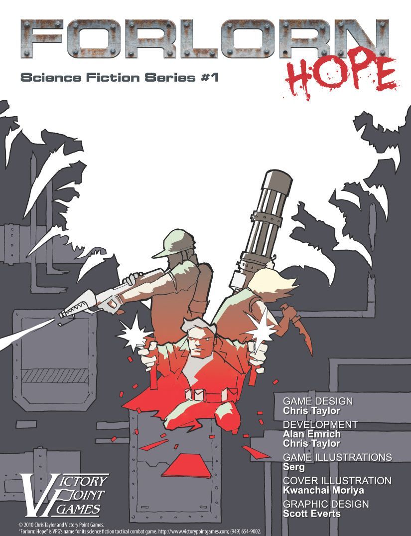 Descrizione: Forlorn is a game of tactical combat between a squad of human Space Marines and a nearly unlimited horde of vicious alien Xenos aboard the claustrophobic space station, Hope. The Marine player utilizes a limited number of Action Points to command the Forlorn Squad, hoping that luck and a timely rush of adrenaline will help them to complete their desparate mission with at least a few survivors. The Xeno player has no such worries, as the single-minded horde relentlessly presses in from all sides, fearlessly confronting the human's advantage in firepower, proving that quantity has a quality all its own.