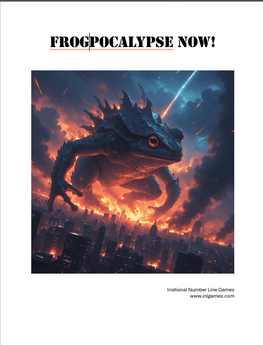 Frogpocalypse Now! is a tabletop wargame that pits the forces of an imperiled humanity against the worst croakers to squirm out of the muck.
