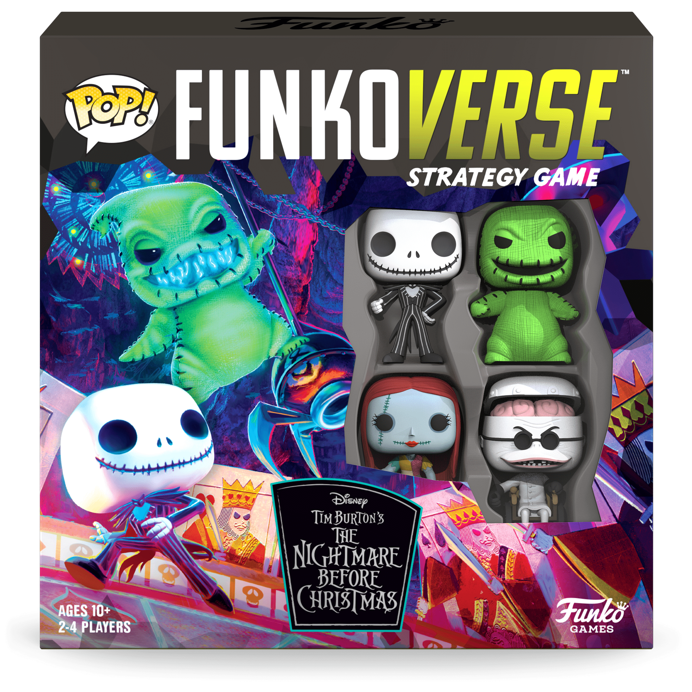 Funkoverse Strategy Game: Tim Burton's The Nightmare Before Christmas 4-Pack is a standalone game that includes the characters Jack Skellington, Sally, Oogie Boogie, and Dr. Finkelstein. This set may be combined with others, giving you the ability to assemble the team you want!