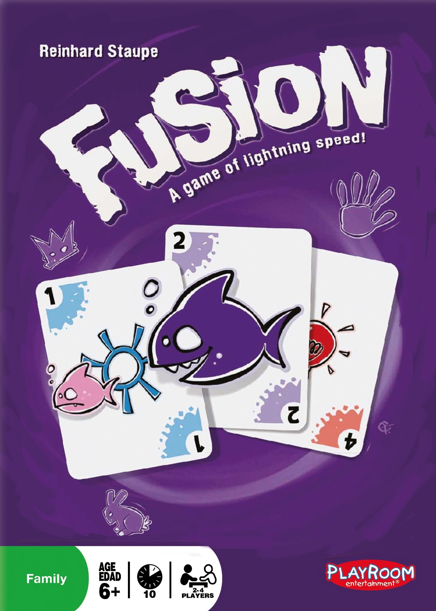Descrizione: Fusion is a twist by designer Reinhard Staupe on his own Speed/Blink. The card deck consists of 72 cards with each card having a number (1-6), a letter (one of six, which spell out "fusion"), and a color on that letter (one of six). Three rule cards are placed face-up, with one card from the deck placed next to each rule to start a pile.