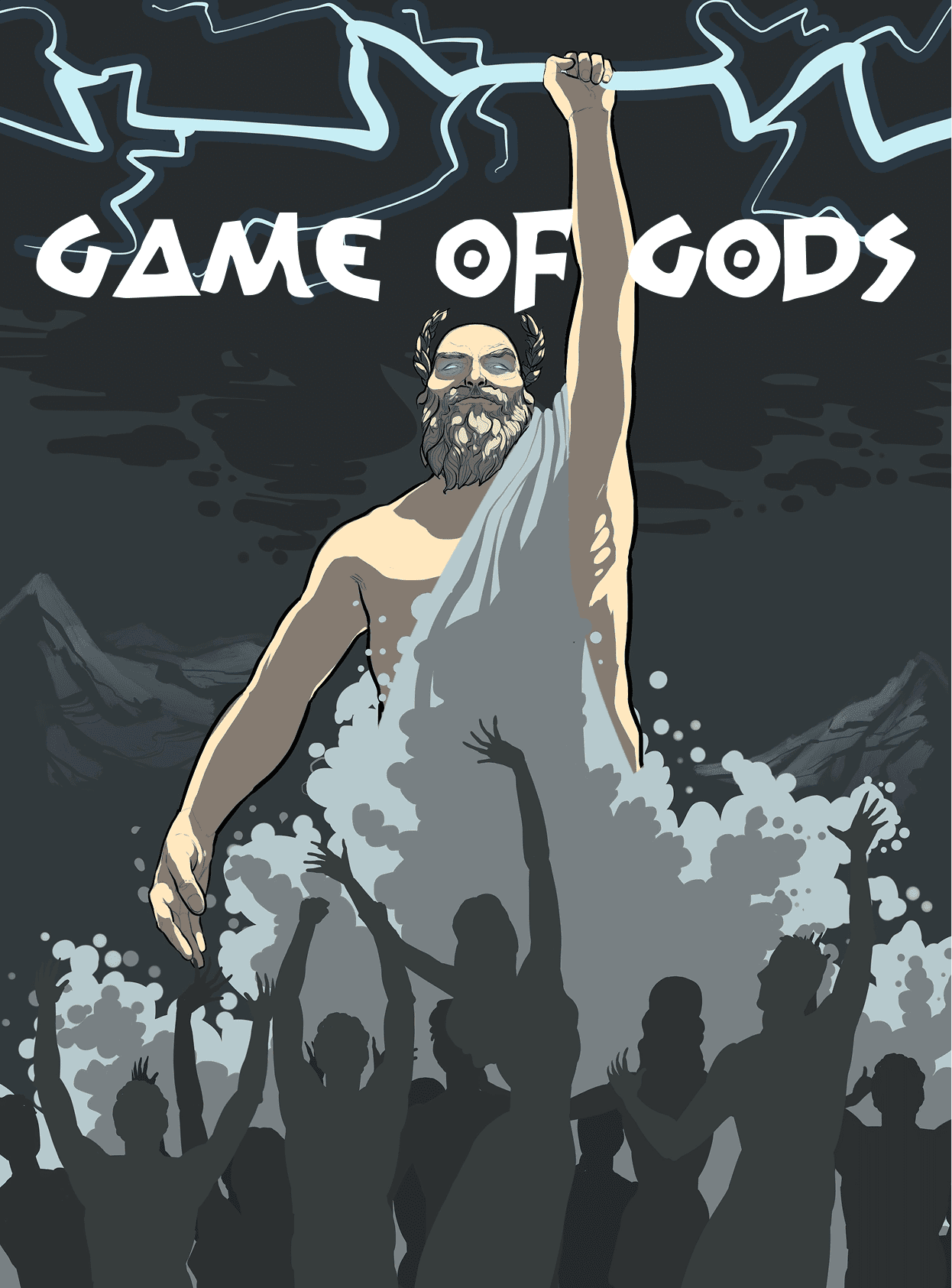 Descrizione: A 2P head-to-head game, where each player utilises Gods of the Greek pantheon to outmanoeuvre each other. Players take turns playing cards to their 3x3 grids, then resolving all the effects of their face up cards to influence the game state.