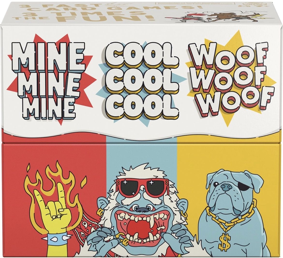 Descrizione: Add three times the card slapping, matching, and quacking fun to friends and family game night with the Games Games Games 3-pack of family card games. In Cool Cool Cool, play a fast-drawing card competition full of slang yelling and crazy card matching that slaps (hard). Woof Woof Woof is a wild and wacky game all about channeling your inner party animal while making funny animal sounds and actions. In Mine Mine Mine, sharing is for losers in this fast-moving frenzy card game of shouting “Mine” as you swap and snatch up cards with unique artwork. Three Times the Fun: Get three fast-paced, endlessly fun & replayable family card games in one epic Games Games Games value game pack featuring Cool Cool Cool, Woof Woof Woof, & Mine Mine Mine. Quick Party Games: Whether you want to shout out some cool slang, start a Donkey Parade or scramble to swap cards while yelling, “mine mine mine,” there’s a fun & funny card competition for anyone. —description from the publisher