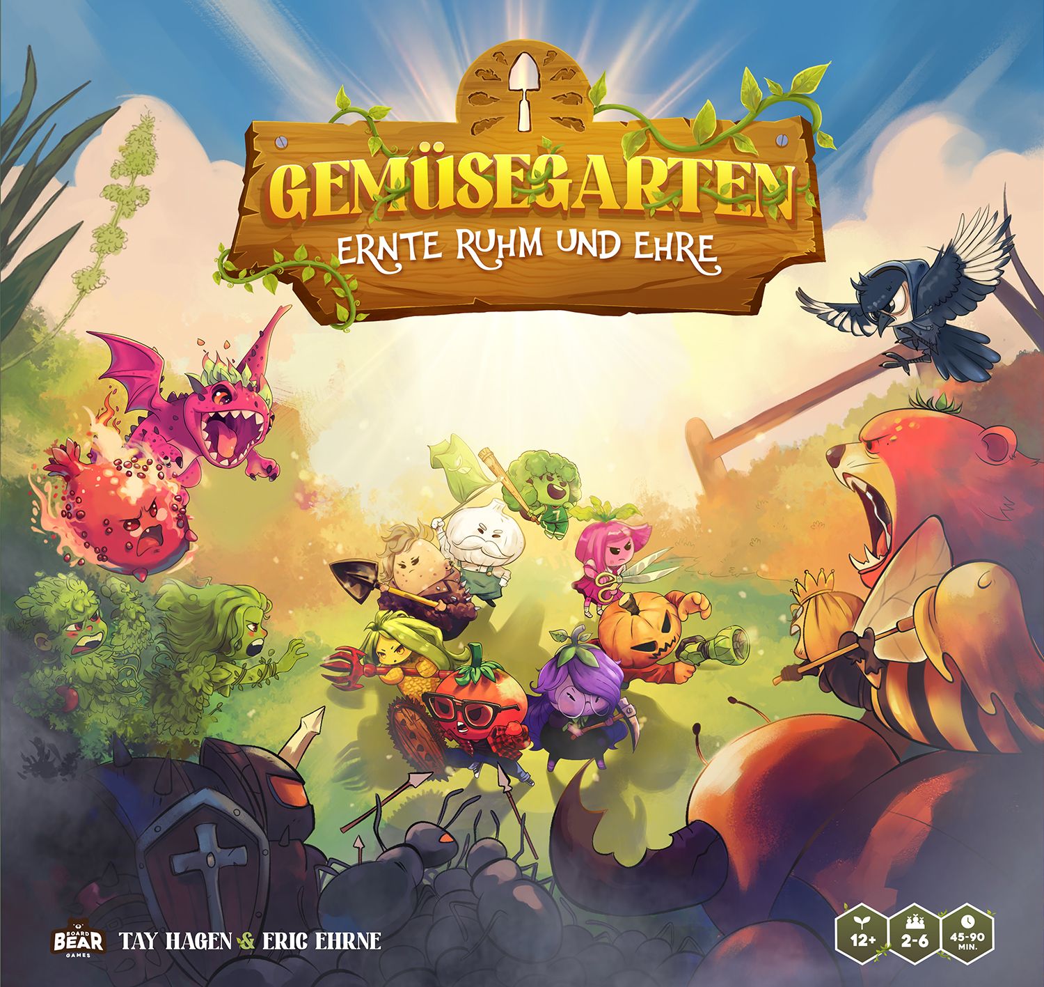 Each turn, players collect seeds, plant setlings, grow mighty vegetables, and face unpredictable events or hilarious threats like “Hungry Vegans” or mischievous critters. Using clever item cards, dice rolls, and a mix of luck and planning, players must manage their limited action points to expand their garden, outsmart rivals, and complete missions or expeditions that earn them precious Fame Points.