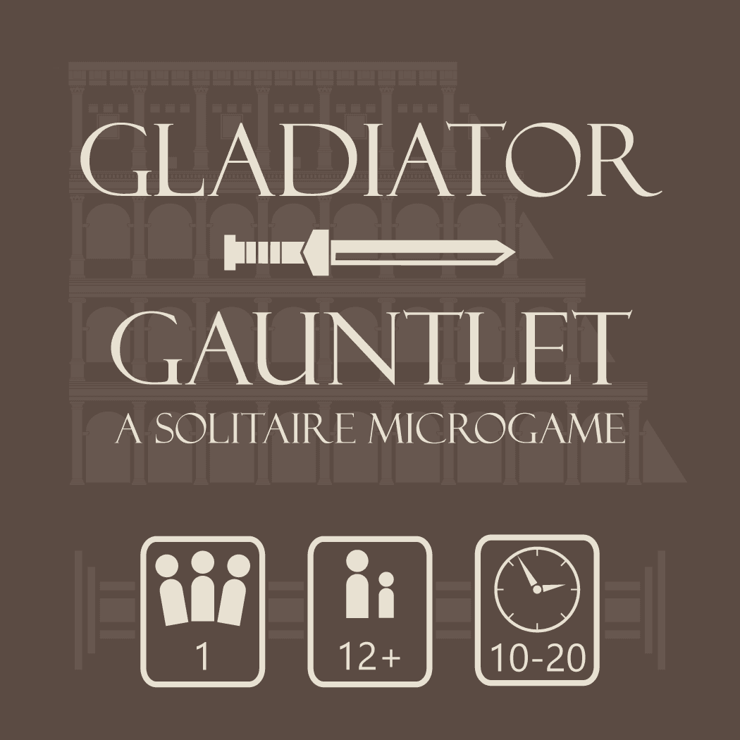 Descrizione: Gladiator Gauntlet is a solitaire micro-wargame where the player fights up to 6 rounds of enemies in the colosseum, attempting to win glory and reknown. The player fights each enemy in sequence, matching their own dice versus the enemy's. Whoever wins each dice match causes damage to the opponent.