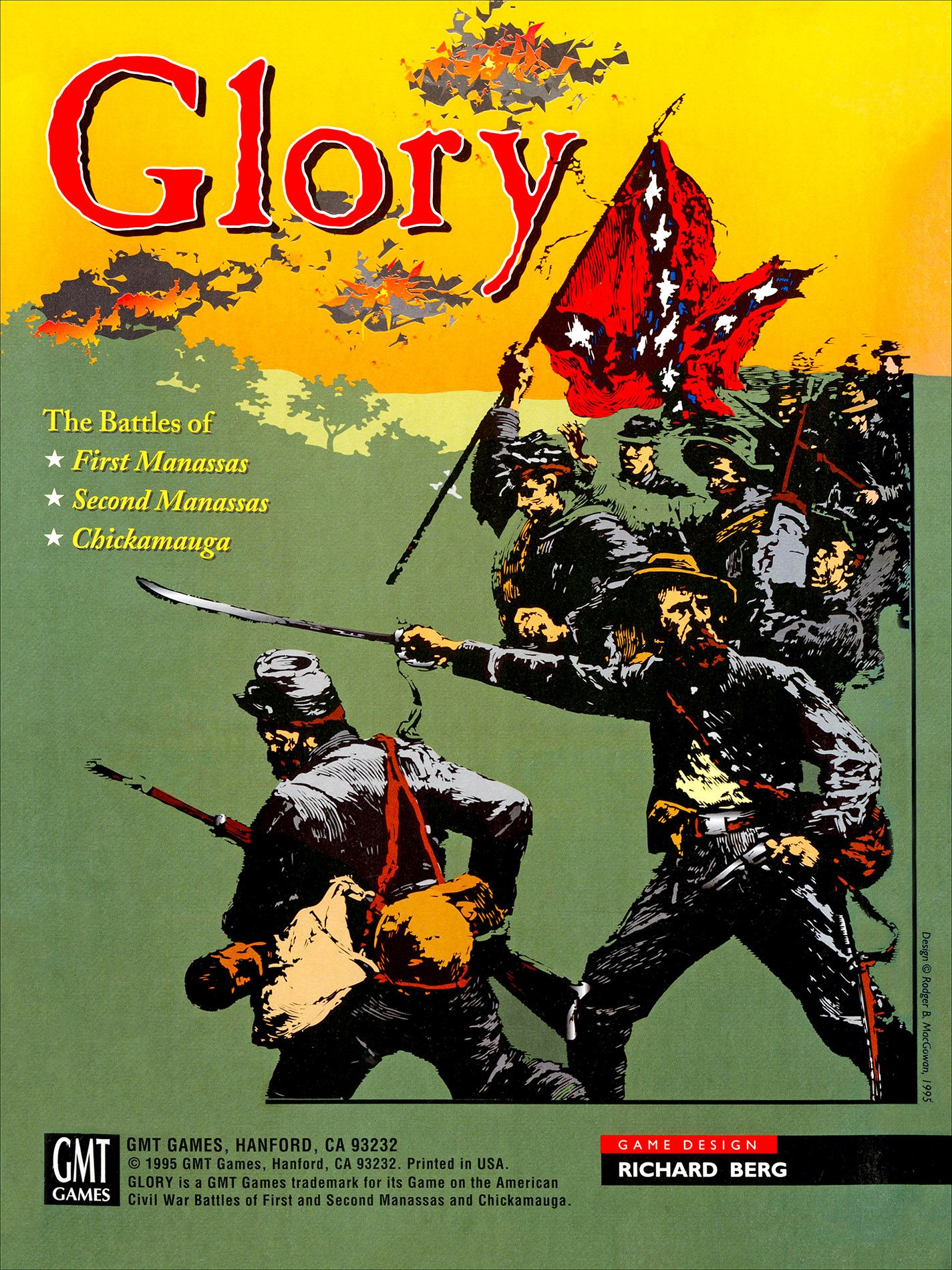Descrizione: Glory: The Battles of First & Second Manassas and Chickamauga, 1861-63 is the first game in GMT's Series: Glory (Richard Berg). Glory presents three American Civil War battles - First Manassas (1861), Second Manassas (1862) and the Battle of Chickamauga (1863) - as never before seen. The new game system combines sophistication with ease of accessibility: the rules are less than eight pages and there are practically no charts. The system combines mostly familiar mechanics with just enough new ones to add spice and challenge to comfortable familiarity. And while you can start playing in about 15-20 minutes, it will take far longer to master the nuances of play. To add to all of that, there are four different ways to play the game, from Igo-Hugo all the way to command oriented LIMs.