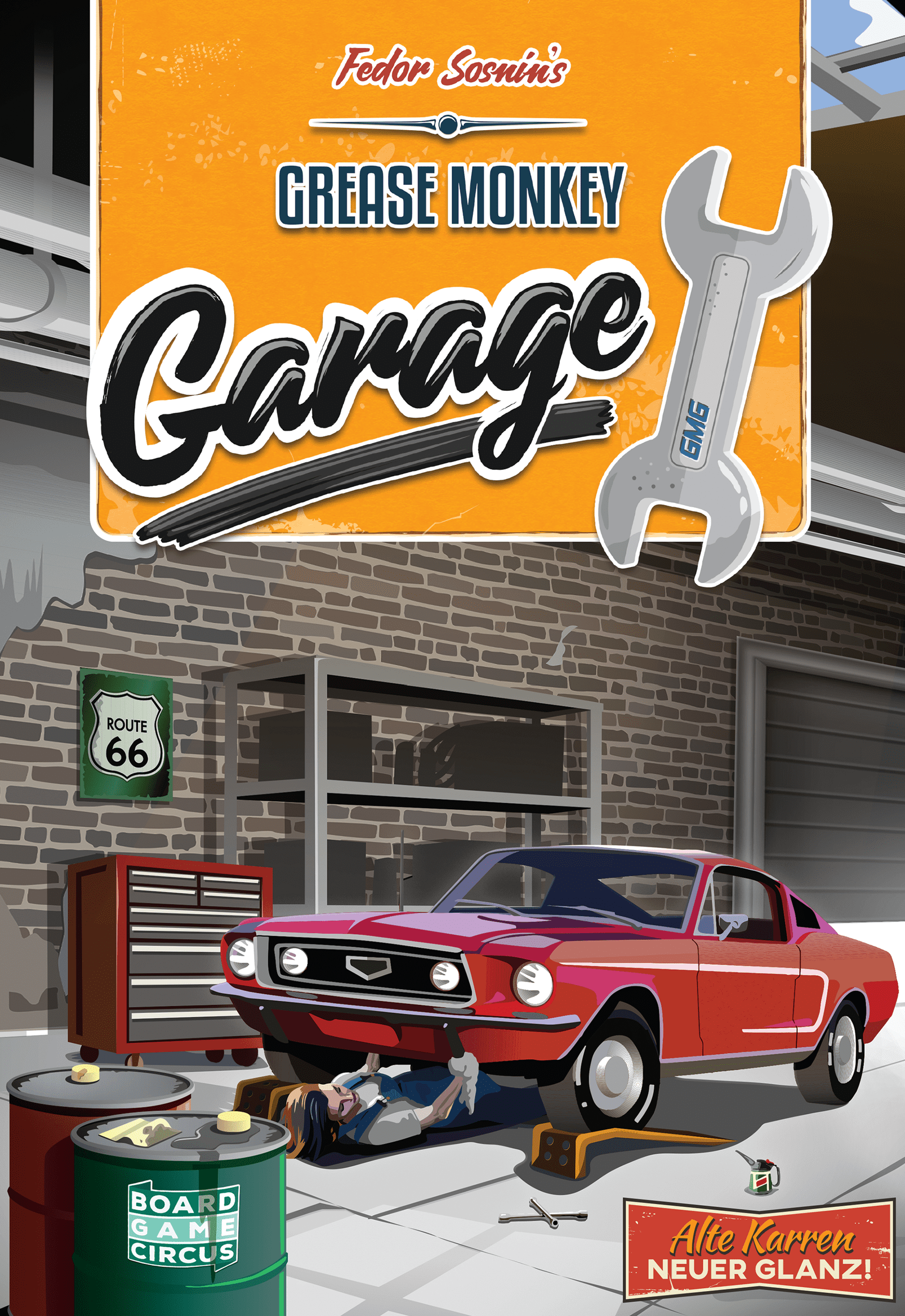 Grease Monkey Garage is a family-friendly shared worker placement game. Move your Specialists and the commonly shared workers between the locations to gain vehicles for repair, new resources or to trade parts required to fix the cars. Once you have fixed a car, return it to the happy customer and gain victory points. Each round a new Event Card will be revealed, altering the game rules with positive effects or penalties to cope with. Adjust your strategy accordingly and become the manager with the best reputation after returning 6 cars to customers. A secret bonus card will reward you with extra points for a specific type and color of cars fixed.