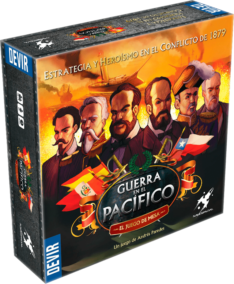 Descrizione: War in the Pacific is a board game set in the armed conflict that took place from 1879 to 1883 in which Peru and Bolivia fought against Chile, for 2, 3 or 4 players of ages 8 and older. There are two sides for which you can play: the alliance of Peru and Bolivia or Chile .