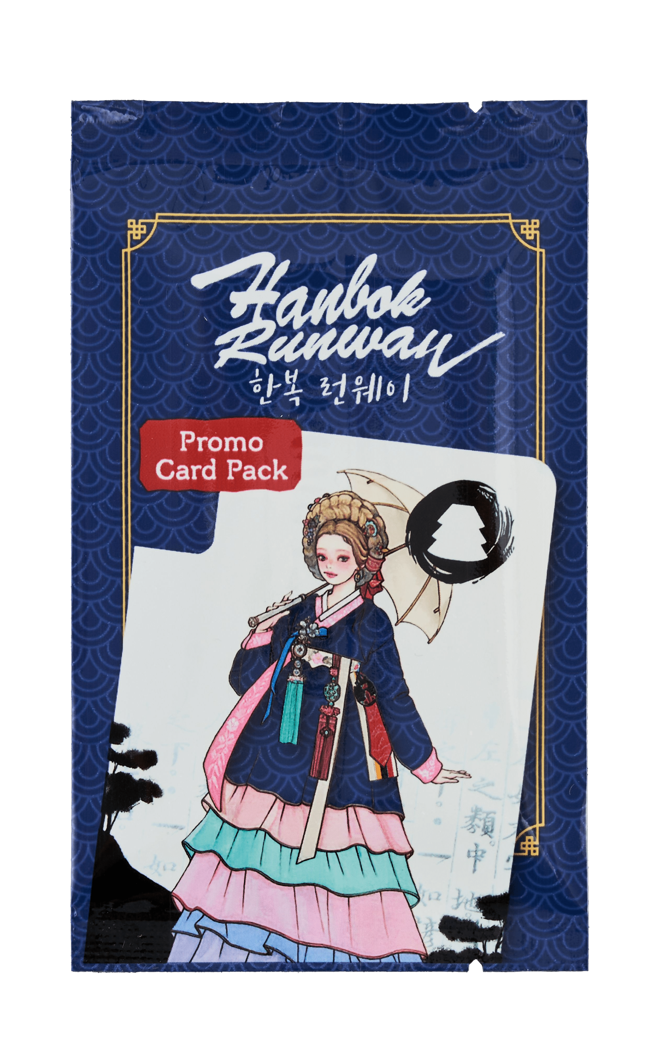 Descrizione: Hanbok Runway: Mujigi Style is a promo card pack for the Hanbok Runway board game featuring the new ability style card Mujigi Skirt, along with tokens and reference cards.