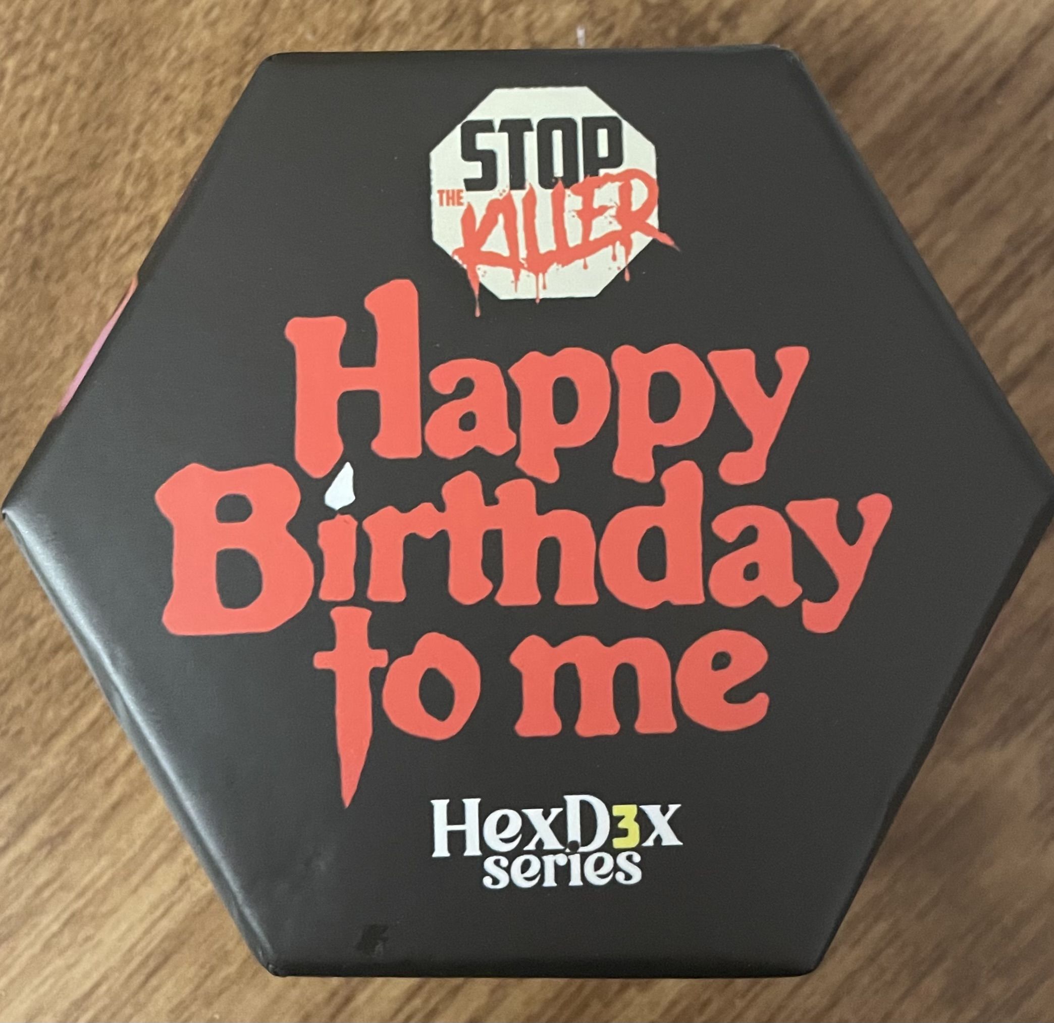 Descrizione: Happy Birthday To Me is part of the Stop the Killer Hex Dex Series of games themed to the 1981 horror film. To win this solitaire game, you must correctly match the edges of the hexagonal cards before the sixth Kill card appears. Rule variations allow for easier or more difficult gameplay.