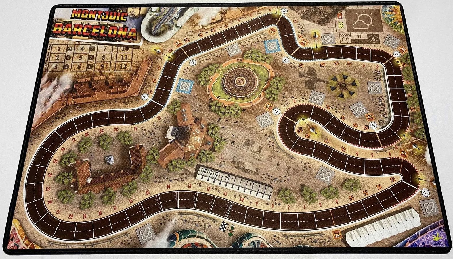 Descrizione: Central Park and Barcelona tracks Double-Sided Heat: Pedal to the Metal Play Mat Unofficial Upgrade