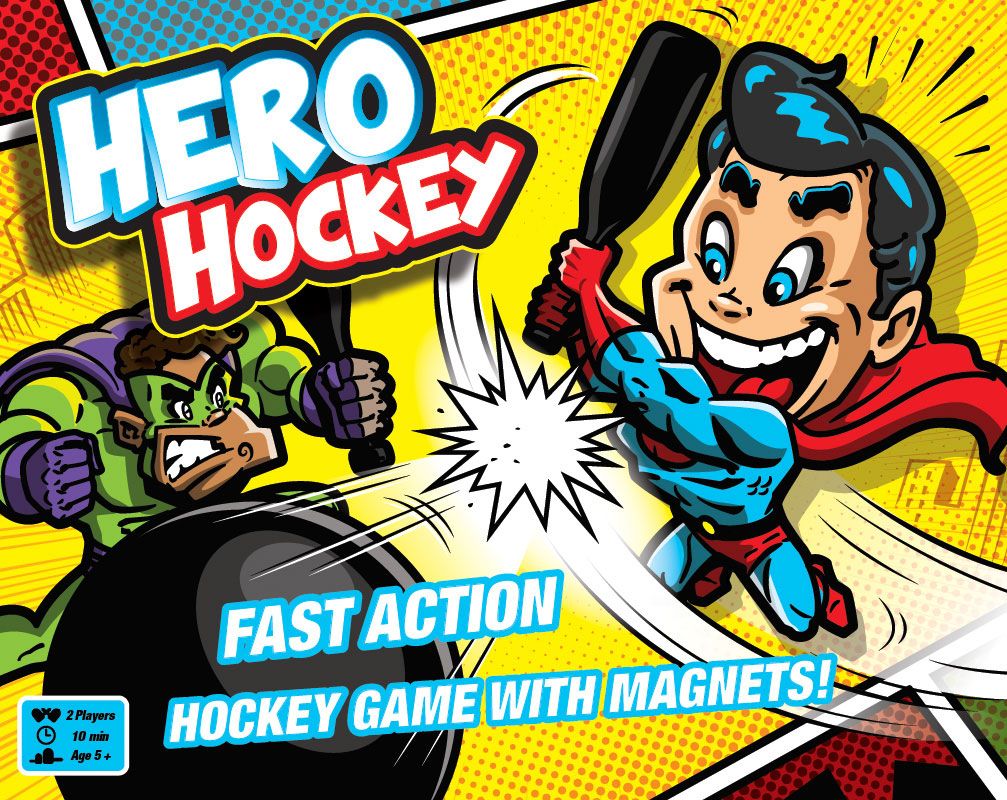 Descrizione: Hero Hockey is a dexterity game that you play underneath the board.Move a magnet under the table to maneuver your "hero". Defend your goal and shoot toward your opponent's goal in this mashup of air hockey and foosball.