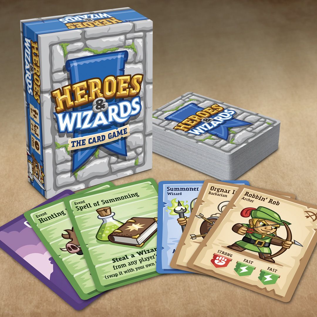 Descrizione: Heroes & Wizards is a light-hearted and party-ready card game where players race to collect a winning combination of legendary heroes in order to embark on an epic quest to save the game's kingdom from impending doom.
