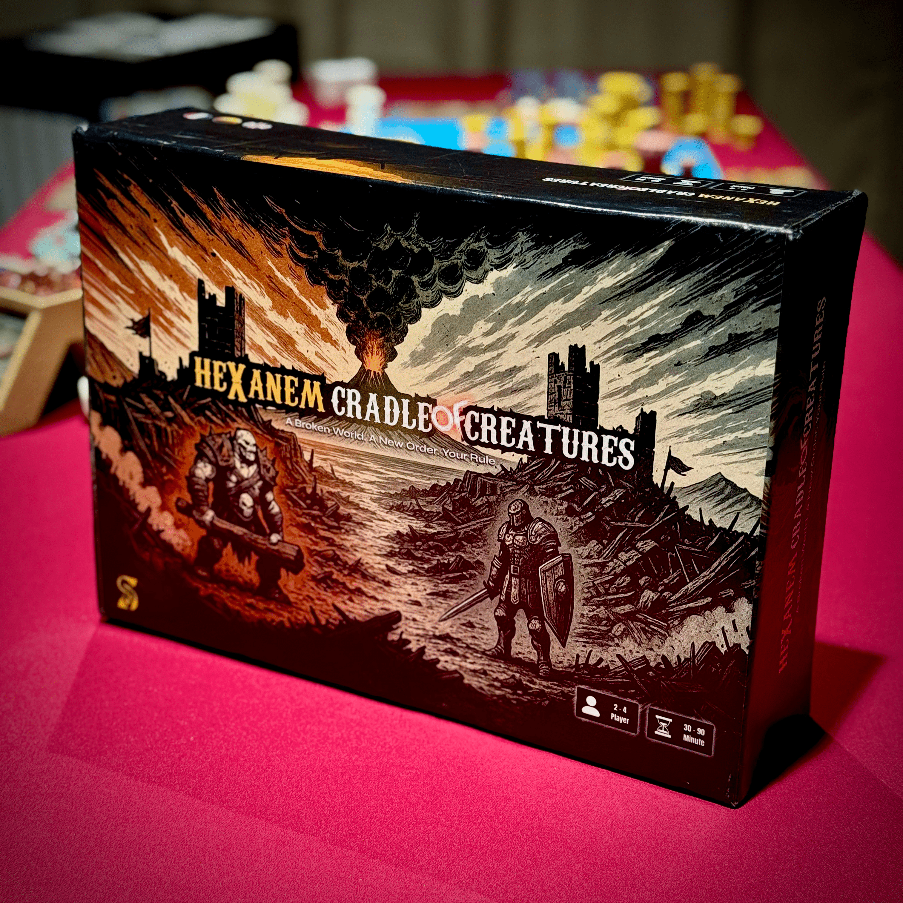 Descrizione: Hexanem – Cradle of Creatures is a modular strategy board game set in a broken world, where players build magnetic castles and towers, command diverse champion classes with unique abilities, and adapt to the unpredictable roll of dice and fate. Every battle on the hex battlefield challenges you to balance strategy, luck, and survival. Hexanem: Cradle of Creatures tabletop game consists of 2 main versions. These versions include: Hexanem: Cradle of Creatures - Extended Edition 54 cardboard map pieces 5 3D map pieces 140 3D magnetic castle and magnetic tower pieces 24 3D Champion pieces + 24 Champion holder pieces 4 cardboard "Champion and Requirement" card pieces 280 resource and chance card pieces 3 cardboard "Development" card pieces 14 dice pieces 1 dice and card holder stand piece 1 main box piece 8 component box pieces Hexanem: Cradle of Creatures - Standard Edition 25 cardboard map pieces 4 3D map pieces 104 3D magnetic castle and magnetic tower pieces 24 3D Champion pieces + 24 Champion holder pieces 4 cardboard "Champion and Requirement" card pieces 160 resource and chance card pieces 3 cardboard "Development" card pieces 14 dice pieces 1 dice and card holder stand piece 1 main box piece 8 component box pieces