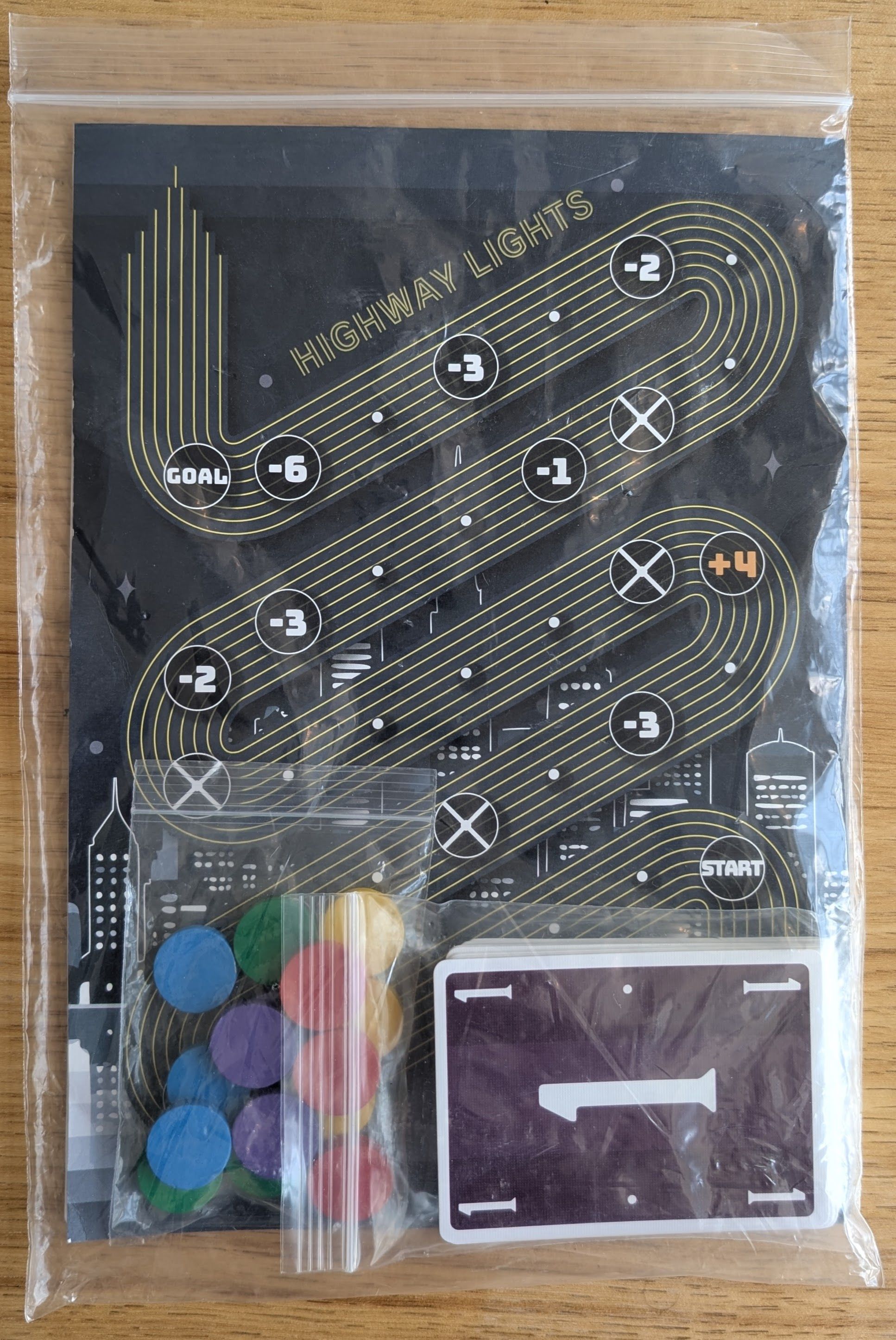 Descrizione: Highway Lights is a reimplementation of the designer's 2019 release "Run et Run". The game is a race along a track where some spaces show positive numbers and some spaces show negative numbers.