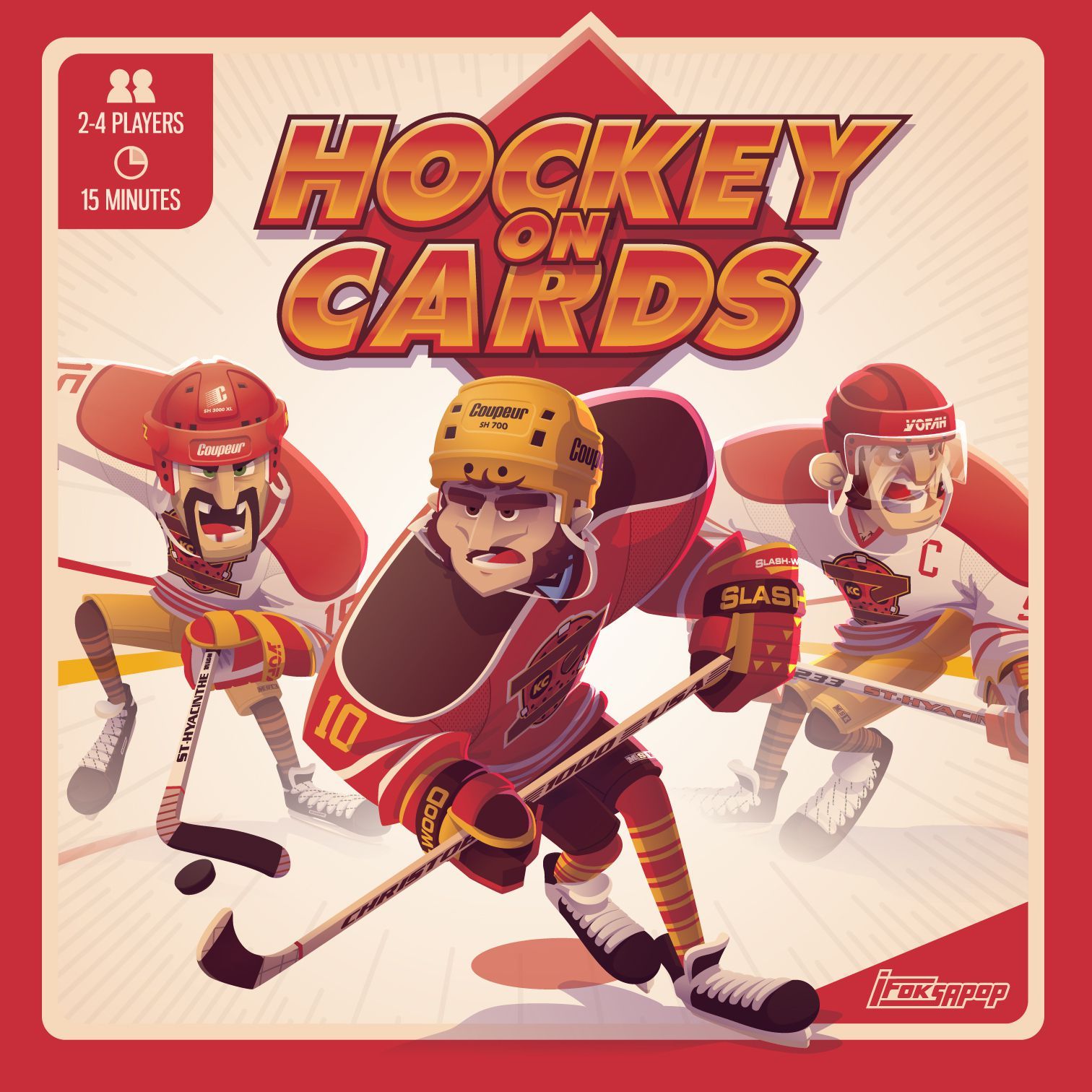 Hockey on Cards is a card game that recreates a hockey game. Match your opponent's card to pass and match a second card to score a goal. The team that scores the most goals during the 3 periods wins the game.