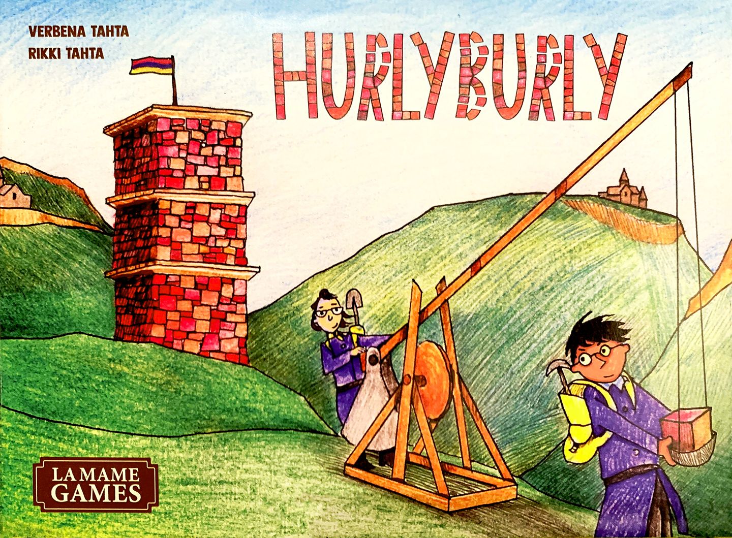 Hurlyburly is a physical dexterity game of building and defending your tower while trying to demolish your opponents' towers and steal their resources. Imagine Super Rhino (Rhino Hero) with catapults! On your turn, you can take one action: