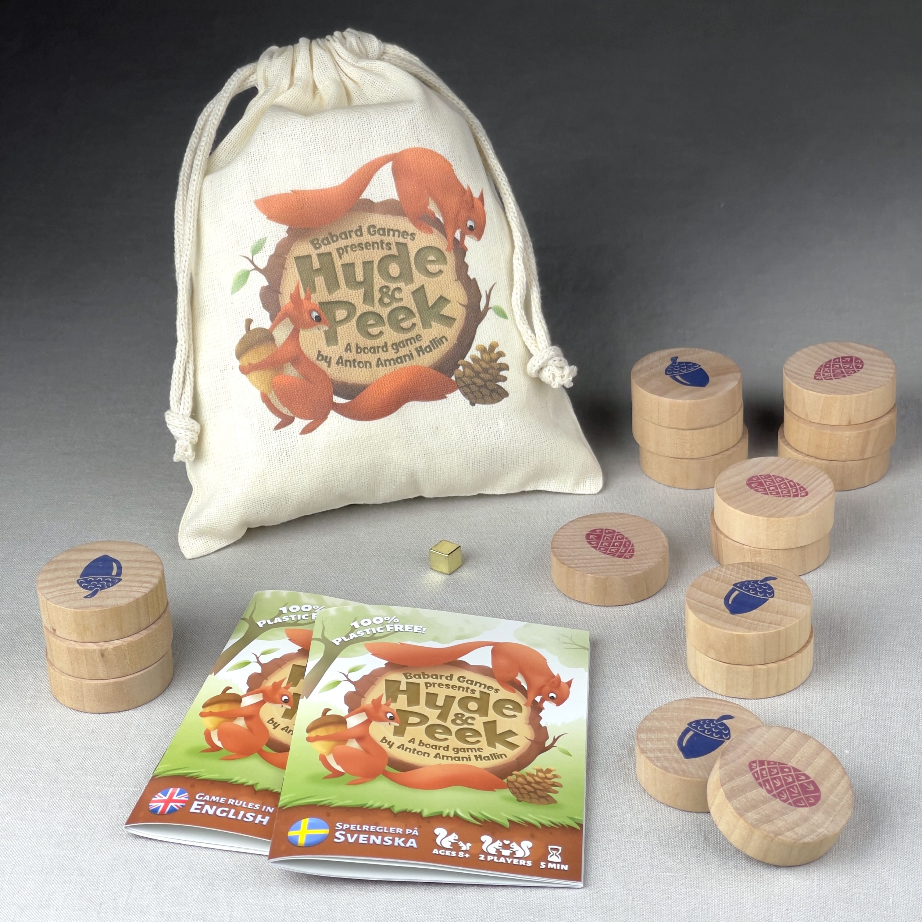 The goal is straightforward: be the first squirrel to display five of your food symbols (either acorns or pinecones) on the game area to secure your winter supply and win the game. This creates an engaging balance of tactical placement and memory as players work to achieve their winning condition while preventing their opponent from doing the same.