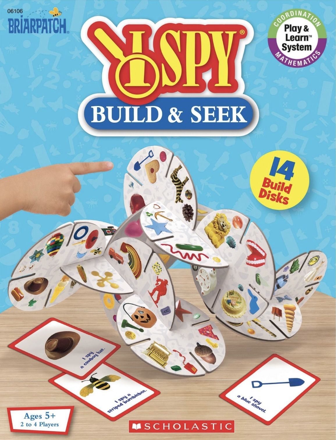 The New York Times bestselling series by Jean Marzollo and photographer Walter Wick, I SPY: A Book of Picture Riddles, continues to amaze search-and-find fans of all ages with the I SPY Build & Seek Game! This imaginative twist on the beloved seek-and-find game invites kids to get hands-on as they build their very own 3D I SPY Tower using 14 colorful interlocking disks. No two towers are ever the same, as each structure becomes a one-of-a-kind hidden object playground! Once the tower is built, players take turns flipping over Seek Cards. Everyone searches the tower to spot the exact object shown on the card. Think you've found it? Be the first to shout, "I SPY!" and point it out! With 56 unique Seek Cards and endless ways to build and play, this game builds observation skills, memory, spatial thinking, and collaborative creativity. Perfect for family game night or classroom fun, I SPY Build and Seek brings learning to life with one disk, one clue, and one exciting discovery at a time.