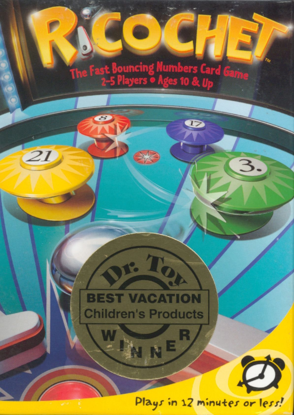 Descrizione: Put your reflexes to the test in this full-tilt action card game! Follow the pinball as it zooms and zips from bumper to bumper. Use number and color cues to figure out which card it will bounce to next. Spot the last place the ball will go, and you win the card. The player with the most cards is the pinball wizard!