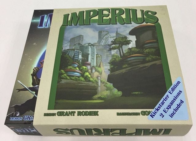 The kickstarter edition comes with both expansions in their own tuck boxes packaged inside the base game. Includes alternate art slipcover and additional cards.