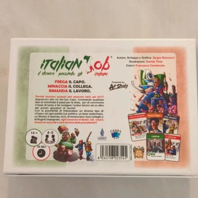 With the ability to play a different kind of "Boss" at each game (a politician, a gangster boss, an owner of a company, etc.), as well as to make this role interpret to more players during a single game, each session of Italian Job will be different from the previous one!!!