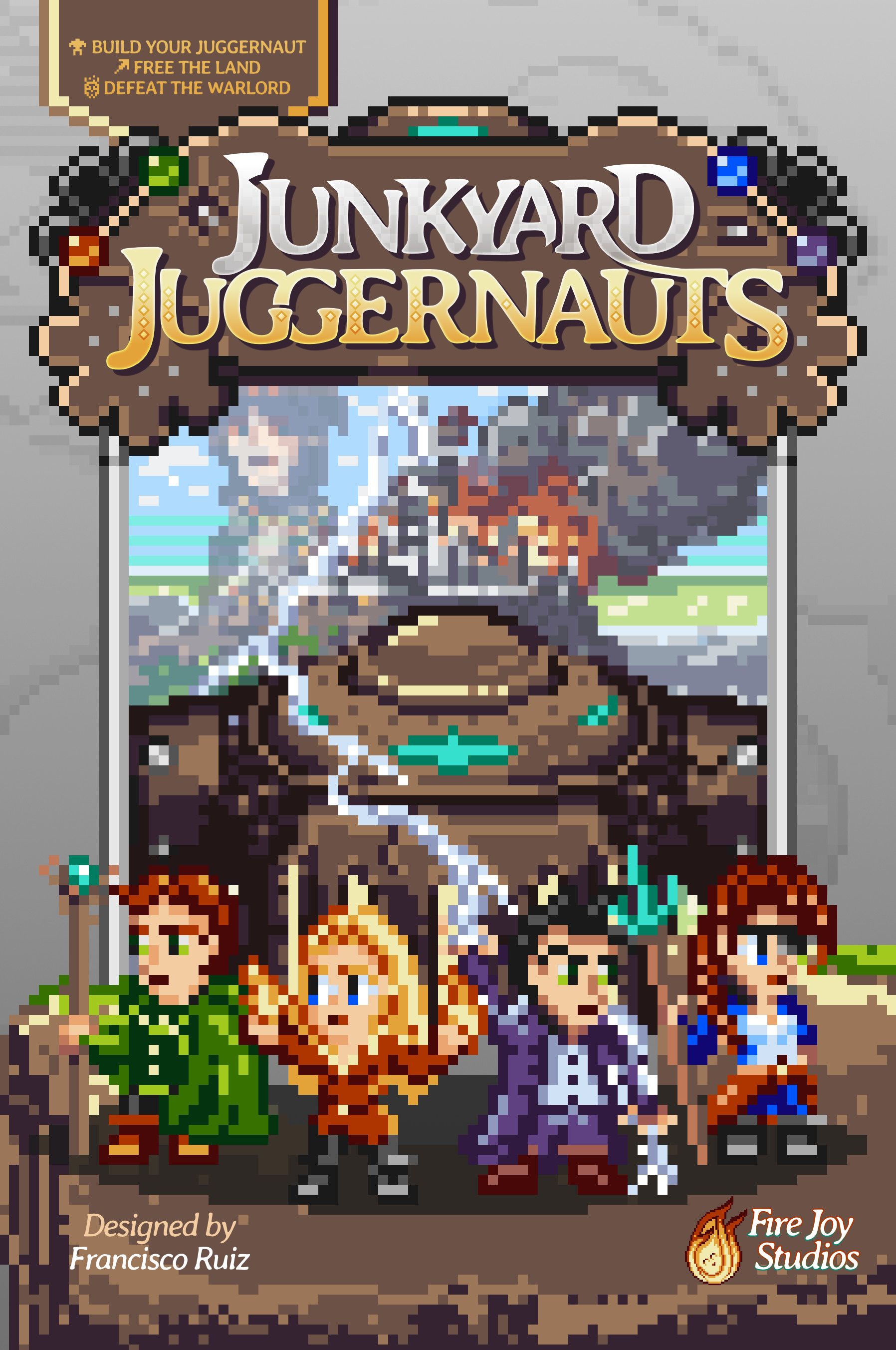 Descrizione: In this fantasy adventure game you will play as a one of four royal heroes, called Mageineers because of their ability to merge magic with machine. A Warlord has attacked your land of Galmenni and set fire to the capital. With your parents the king and queen gone, your tutor Dobern leads you to the only place he believes you have any hope - the Junkyard. In the Junkyard you will draw cards for making a Juggernaut, a mech powered by your magic, to fight the mechanized minions and the Warlord. But being made from salvaged junk, you will need to travel across the land completing quests, upgrading your Juggernaut, meeting the locals, and fighting beasts, to grow strong enough to face the Warlord's Junk Golems, before the final confrontation with the Warlord. However the Warlord card will secretly go to you or another player, becoming their Acolyte, which will make for a final confrontation of all players verse one. —description from the designer