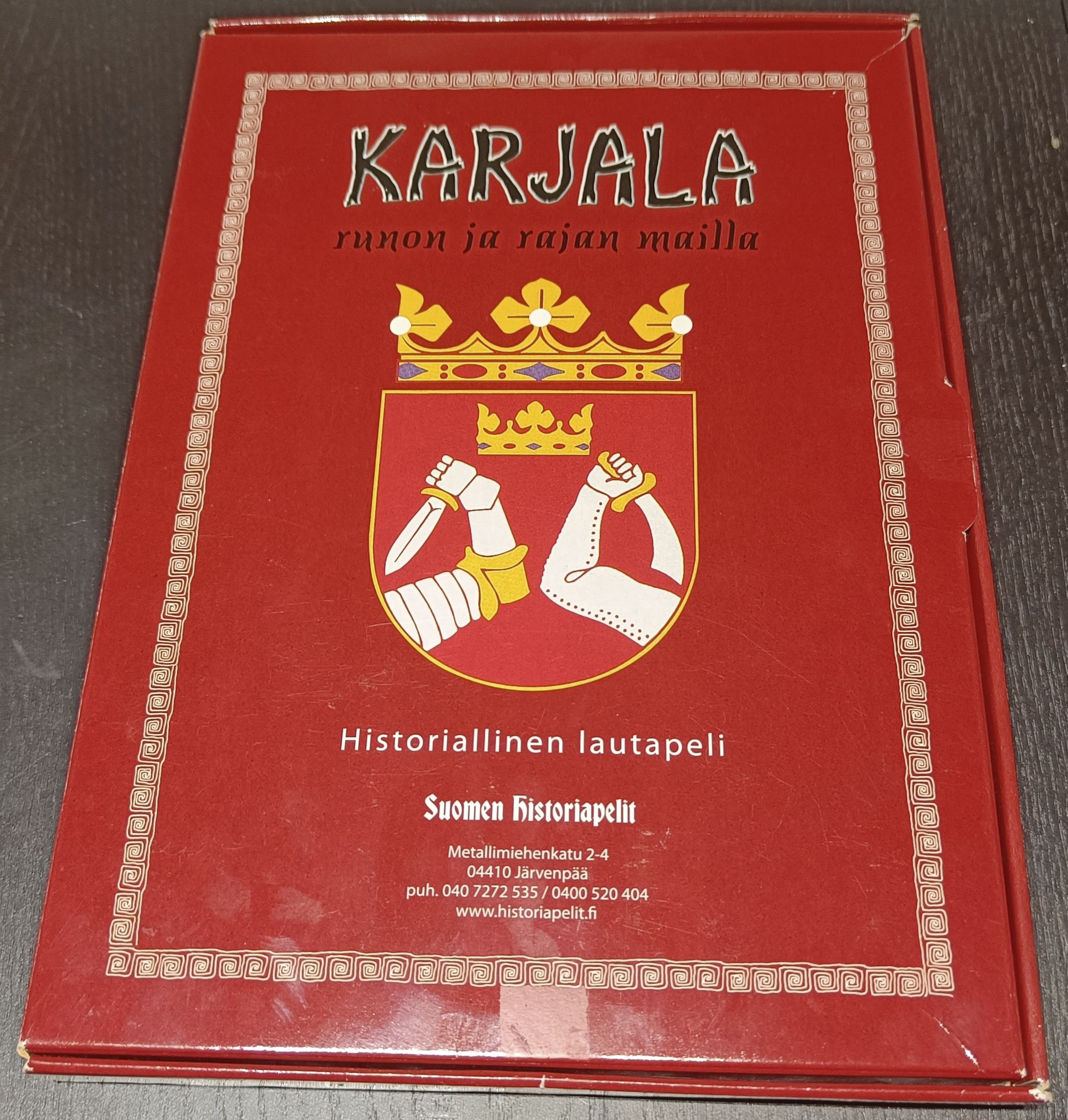 Descrizione: Players travel through the historical province of Karelia, Finland. Dice are thrown to move from town to town through the linear map. For every town there is an event in the manual usually involving answering a trivia question to gain or lose a turn. First player to reach the goal wins the game. The game describes itself as historical and old-fashioned and the manual includes a separate history section.