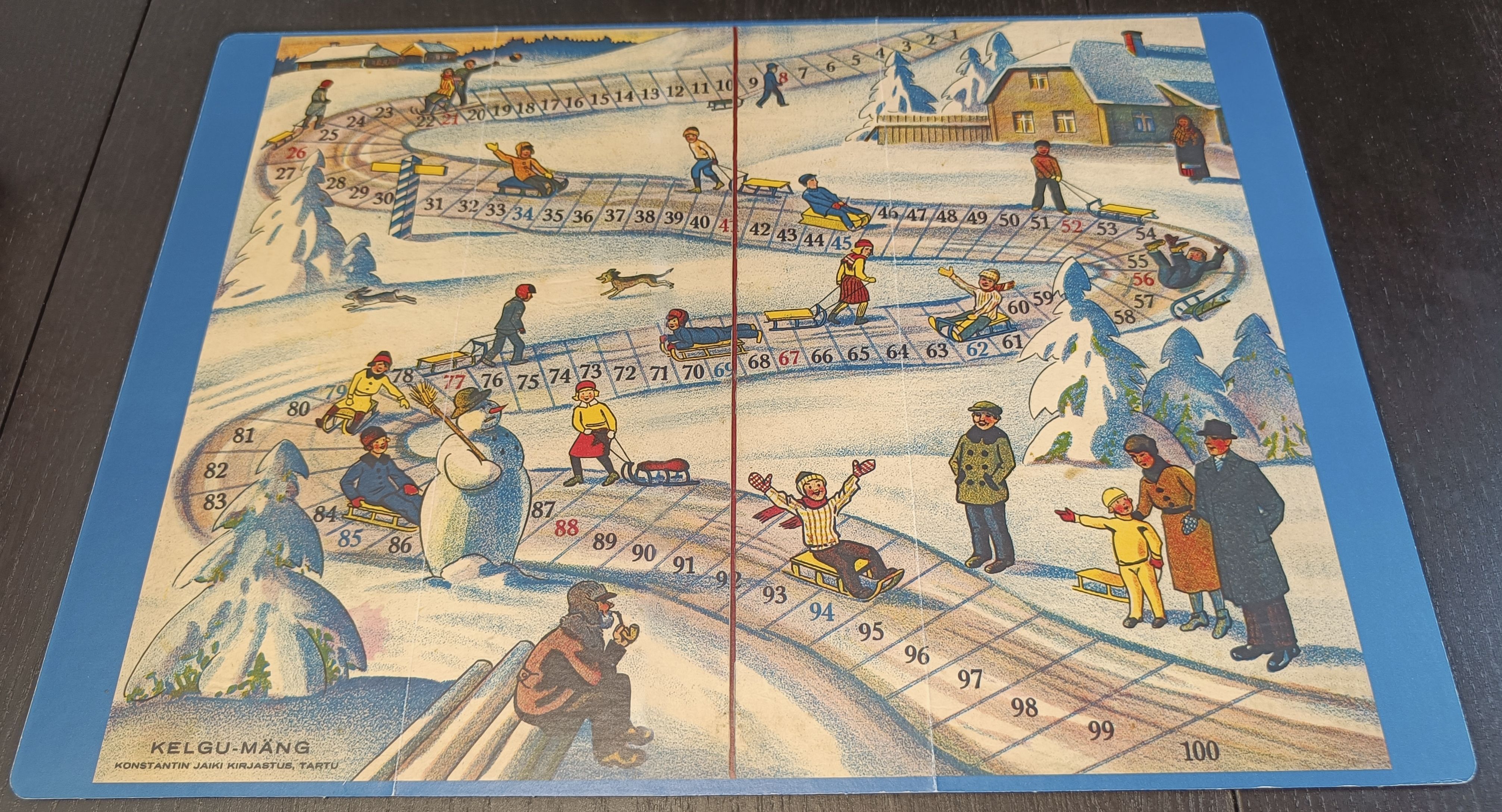 Descrizione: Kelku-mäng (Sledge game) is a roll and move game, where you are sliding down the hill. First player to get down wins the game.