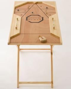 The homemade and well crafted board includes a magnetized "Shucker" to propel the puck down the board and magnets placed throughout the board to deflect and alter the course of the puck. Very fun and unique game.