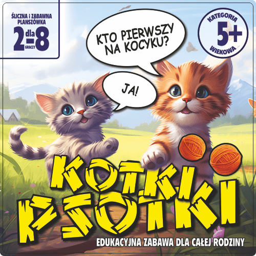 W tej przeuroczej grze planszowej Waszym zadaniem będzie dotarcie swoim kotkiem z pola START na kocyk z napisem META przez kolorowe, pełne kocich ścieżek podwórko, zanim zrobią to inni gracze. Po drodze czeka Was wiele wyzwań i psotek: będziecie biegać, skakać, popychać się, drzemać, polować na skróty, rzucać motkami sobie lub innym graczom, odciskać kocią łapę, chodzić przez rozwidlenia - emocje gwarantowane!