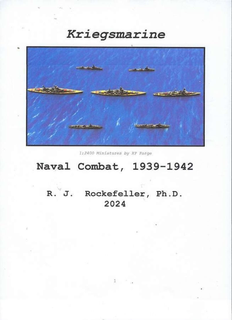 Kriegsmarine can easily be played on a 6’x4’ space, with models of various sizes, 1:2400 or smaller being desirable. The sea scale is 1” = 1000 yards, with movement in the 2”-6’ span, and ranges out to 28” for the biggest guns. A battle with 25 or so vessels, plus aircraft, per side can be resolved in about 4-6 hours.