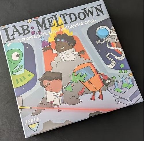 Descrizione: Choosing one of fifteen difficulty levels, players help each other meet the requirements to prevent each of the six labs from melting down by playing cards to gain beaker tokens with positive and negative values to balance volatile chemicals, while placing their meeples in the different sections of the central hub to activate bonus actions.