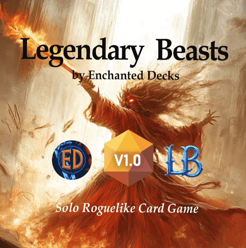Descrizione: Legendary Beasts is a solo roguelike card game where every draw shapes your fate. Simple to learn, endlessly replayable and steeped in fantasy charm. You take on the role of a lone adventurer braving the lands of a cursed Kingdom plagued by monsters, fiends and ancient magic. Your task is to endure every challenge the Kingdom throws at you, surviving each field of battle until no threat remains.