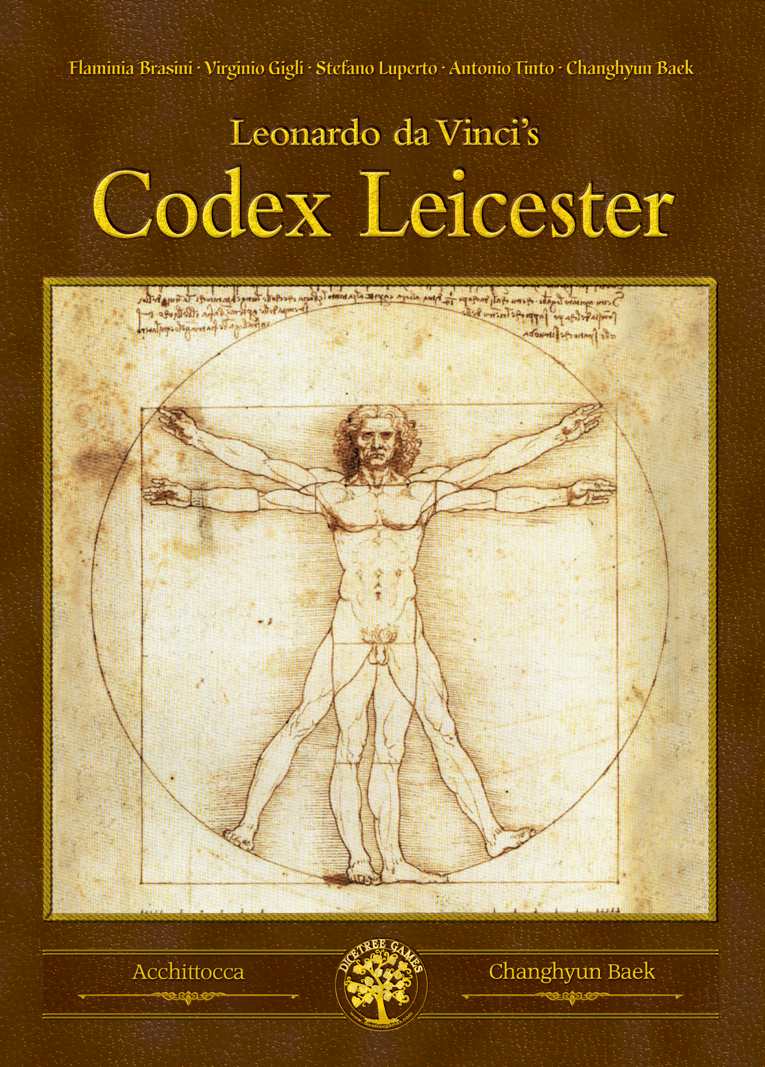 Descrizione: Codex Leicester is the reimplementation of Leonardo da Vinci (2006) by Acchittocca (Flaminia Brasini, Virginio Gigli, Stefano Luperto, Antonio Tinto) in collaboration with the founder of DiceTree Games, Changhyun Baek. It is a new game using the original’s system and theme.