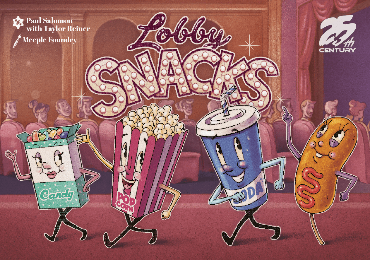 Lobby Snacks is a trick-taking game where success comes at a price. When you win a trick, you score a prize plus the cards played by other players, but you keep your own card face up in your “spent pile.” Each round, the player who spent the most scores nothing.