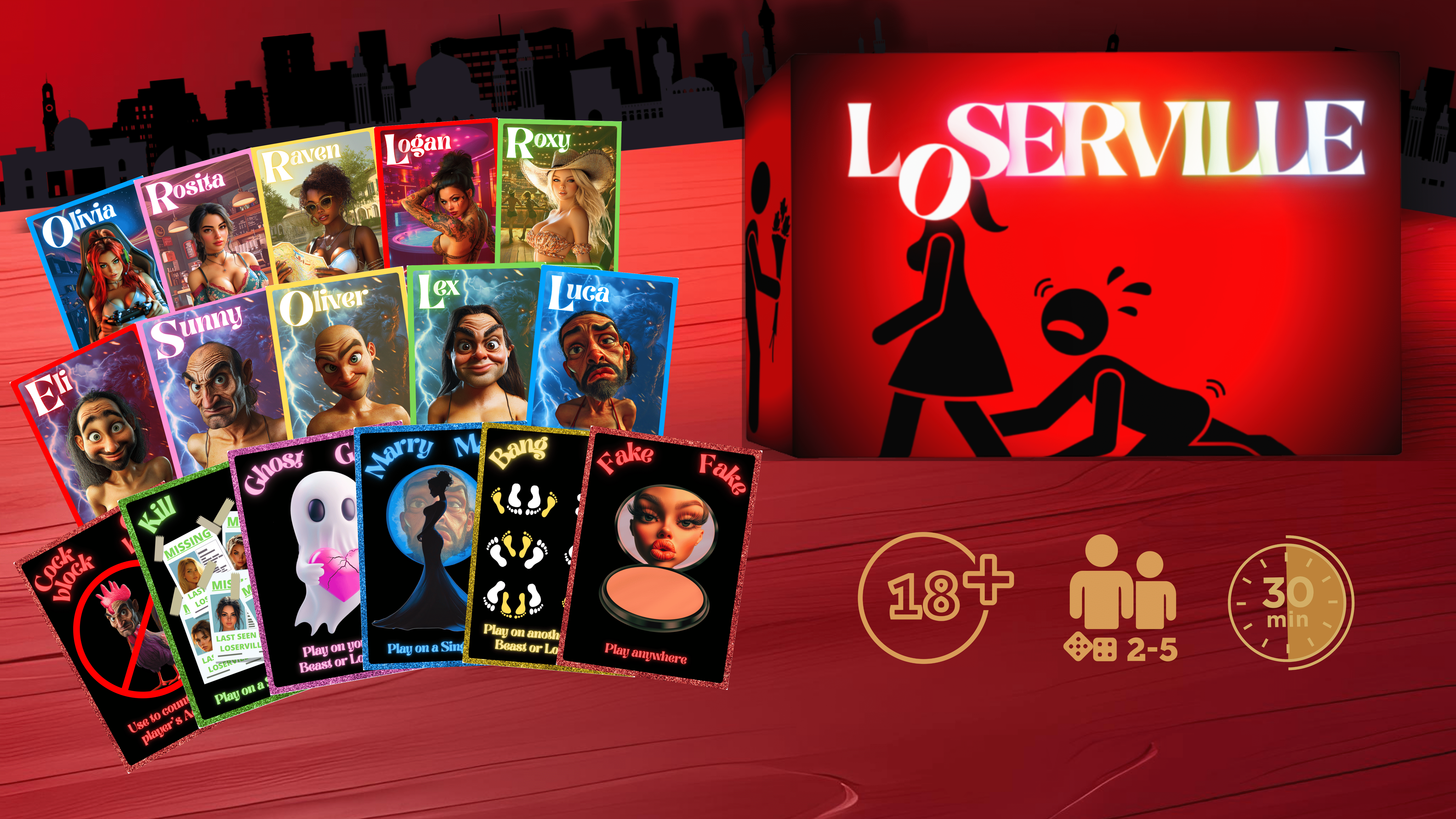 Sabotage, bluff, and play your cards at just the right moment to ruin your rivals’ love lives while boosting your own. In the end, the player with the highest score is crowned the winner of Loserville.