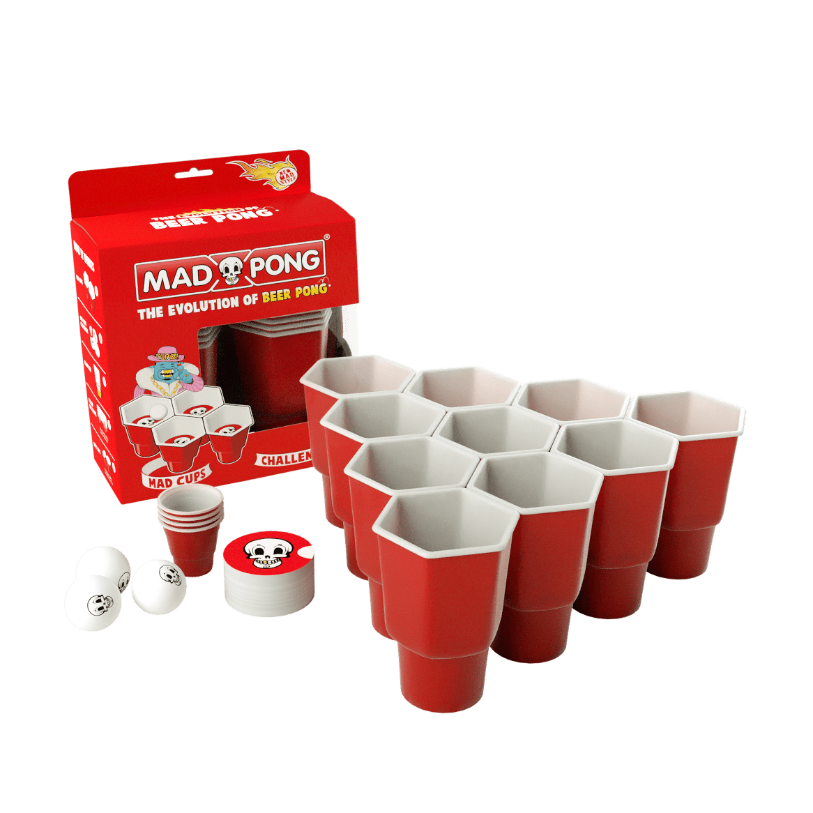 Descrizione: MadPong is a wild twist on classic beer pong with hilarious challenges inside each cup. When you lose a cup, you drink it and then complete a funny challenge from the waterproof card inside. Everyone races to follow the challenge, and the last to finish takes a shot. Win by getting rid of your opponent's cups by throwing a ball in each one. This game is perfect for house parties, pre-drinks, or fun nights with friends. It's a great way for breaking the ice and turning up the energy on your party. Shoot. Challenge. Drink. Repeat. Let the madness begin! —description from the publisher